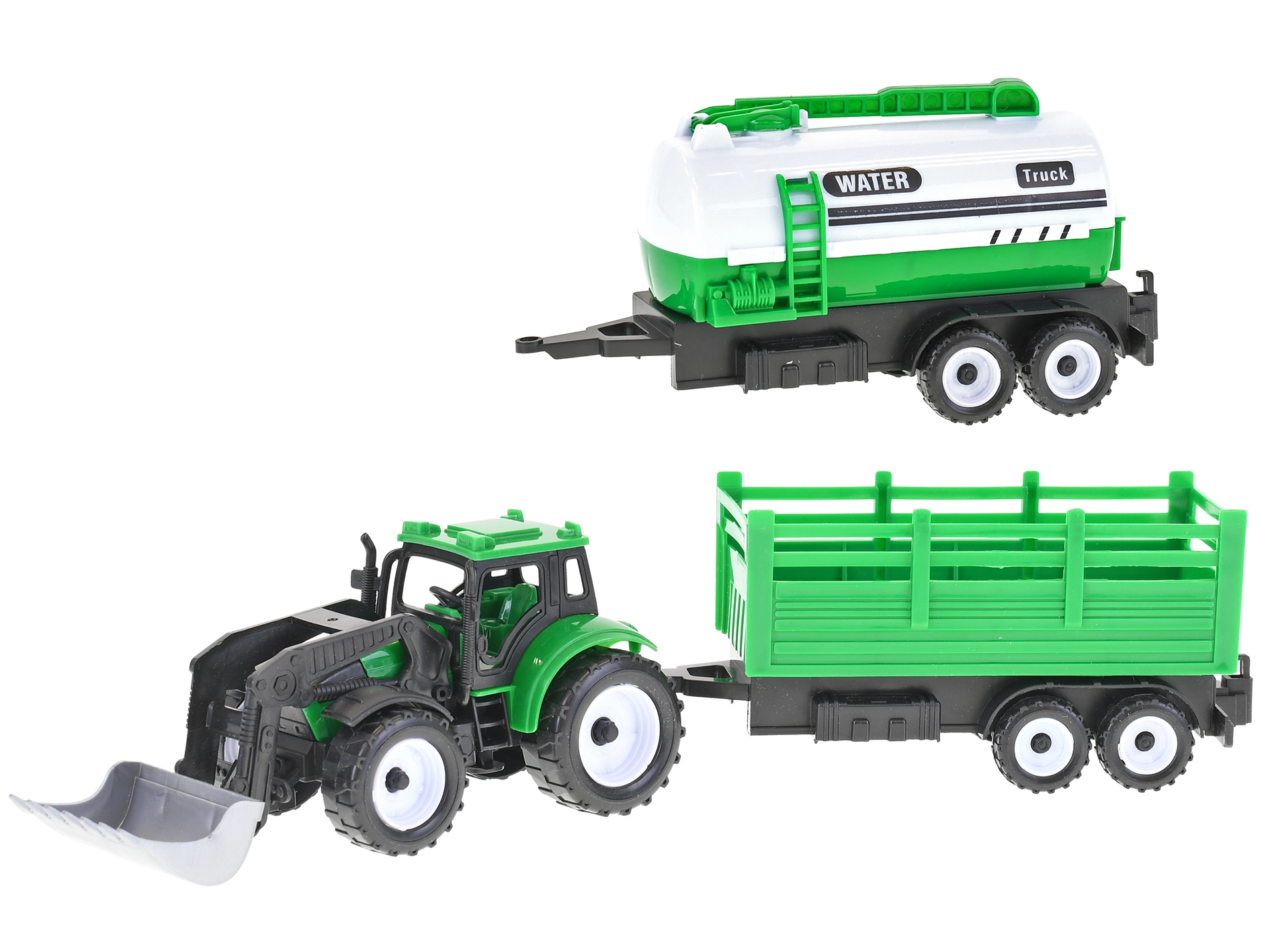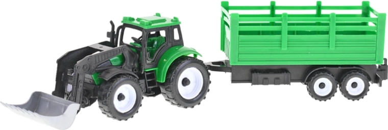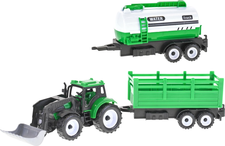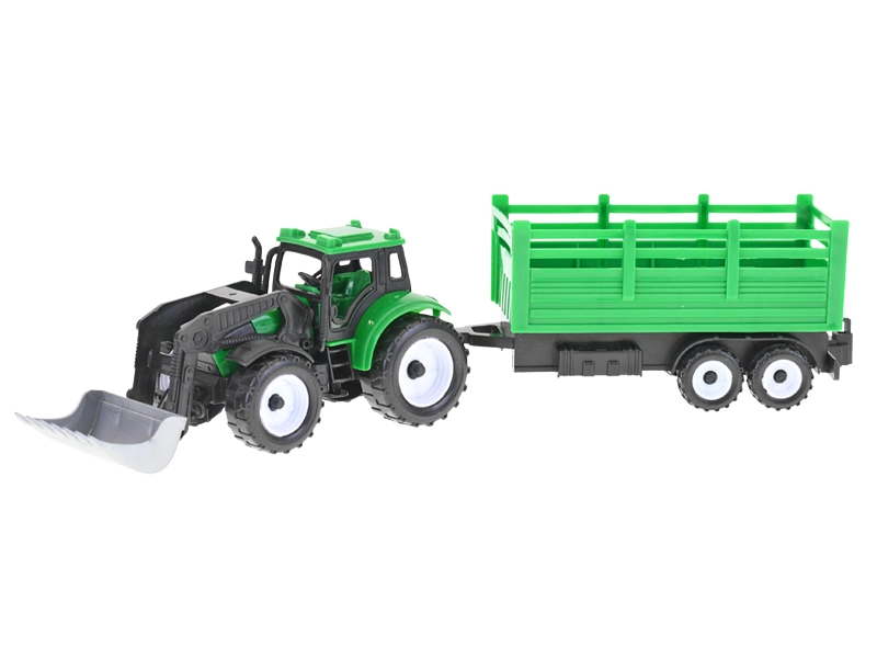 Realistyczny traktor–ładowarka z napędem inercyjnym zapewnia autentyczne wrażenia ze świata maszyn rolniczych. Dzięki długości 17 cm świetnie leży w dłoni także młodszym dzieciom, a solidne wykonanie wytrzymuje codzienną zabawę. W zestawie znajdują się 2 przyczepy, które można łatwo podłączać i odłączać, a do wyboru są 3 rodzaje akcesoriów – pług, koparka i ładowarka – dla jeszcze większej liczby scenariuszy zabawy.