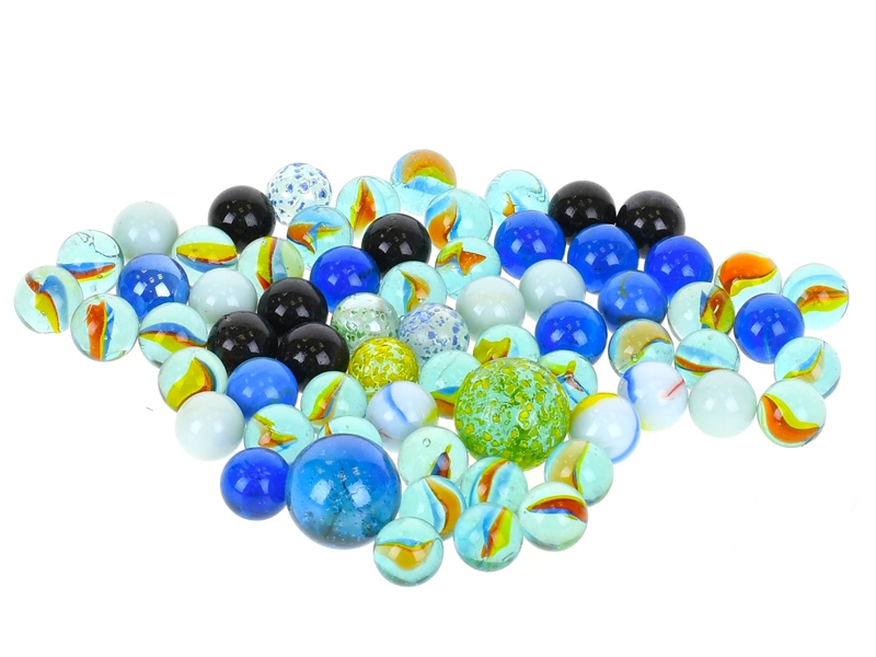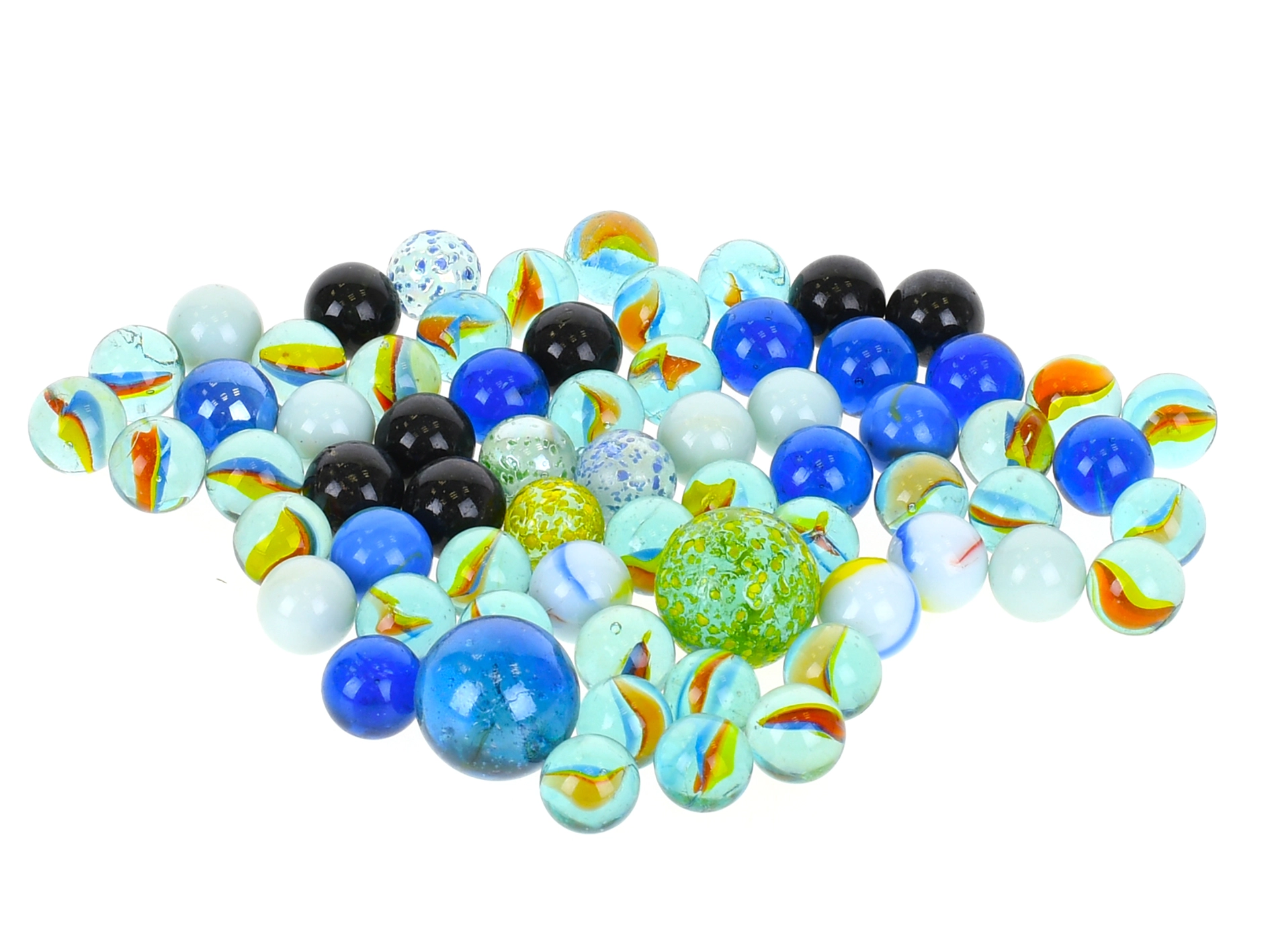 W opakowaniu znajdziesz około 80 kulek w różnych rozmiarach i kolorystycznych kombinacjach – od odcieni niebieskiego i turkusowego po czarne i zielone warianty z eleganckimi wirami. Zestaw doskonały do zabawy, rywalizacji, ćwiczenia małej motoryki oraz jako dekoracyjne wypełnienie do mis i wazonów.