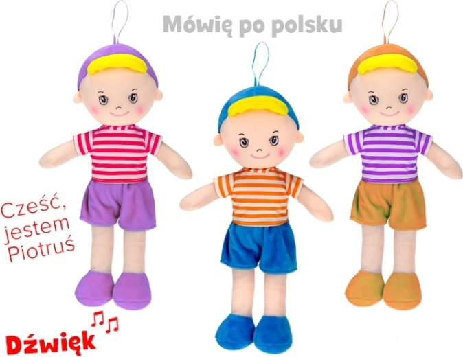 Uroczy przyjaciel dla najmłodszych – miękka szmaciana lalka Piotruś o wysokości 32 cm zapewnia poczucie bezpieczeństwa, przytulne objęcia oraz interaktywną zabawę. Dzięki funkcjom mówienia i śpiewu po polsku wspiera umiejętności językowe i percepcję słuchową. Dostępna w trzech wesołych kolorach i z praktyczną pętelką do zawieszenia. Odpowiednia dla dzieci już od urodzenia.