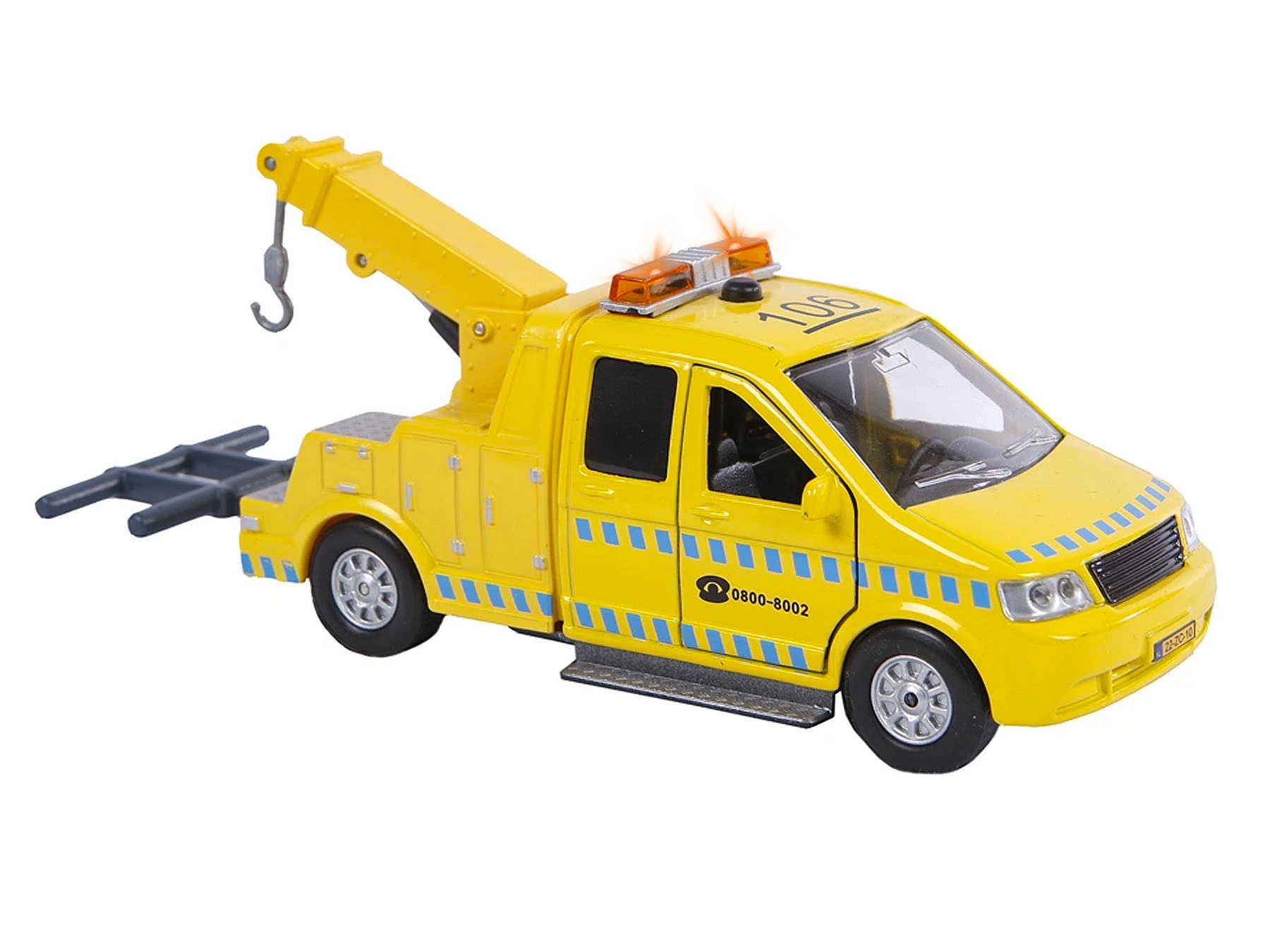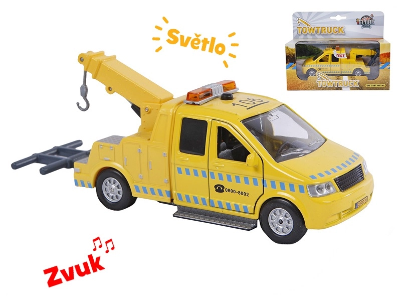 Realistyczna laweta Kids Globe Traffic o długości 16 cm łączy metalowe i plastikowe elementy dla większej trwałości i dopracowanych detali. Dzięki napędowi typu pull-back po naciągnięciu rusza do przodu, otwierane drzwi odsłaniają wnętrze, a efekty świetlne i dźwiękowe uruchamiane przyciskiem dodają autentyczności. Baterie LR41 w zestawie, zabawka jest gotowa do natychmiastowego użycia.