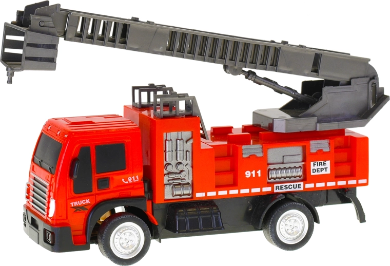 Wóz strażacki zapewnia realistyczną zabawę dla wszystkich małych ratowników. Dzięki napędowi ciernemu po naciągnięciu łatwo rusza, a dzieci mogą cieszyć się dynamiczną jazdą bez skomplikowanych baterii. Wysuwana i obrotowa drabina umożliwia odgrywanie akcji na wysokościach, co wspiera wyobraźnię i rozwój umiejętności motorycznych.