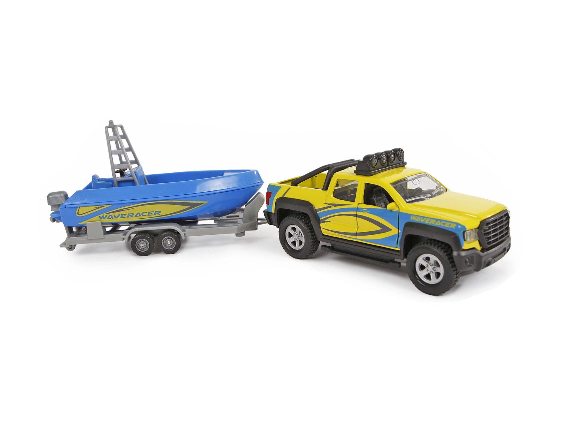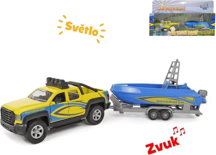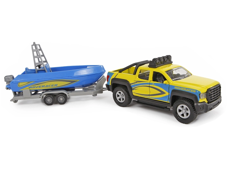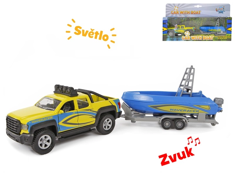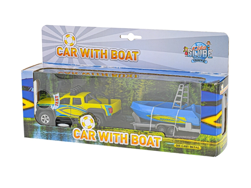 W skład zestawu wchodzi przyczepa z piękną niebieską łodzią, z którą dzieci przeżyją mnóstwo zabawy podczas odgrywania transportu i przygód nad wodą. Idealny prezent dla miłośników aut i modeli, wspiera wyobraźnię oraz rozwój motoryki.