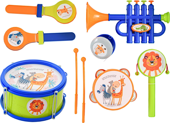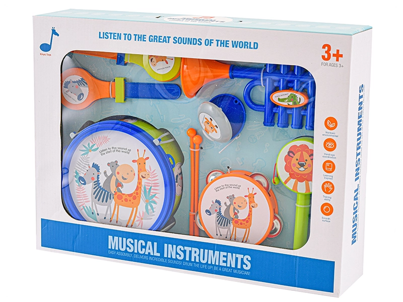 - Kompletny zestaw: 7 różnych instrumentów wraz z pałeczkami do natychmiastowej gry.