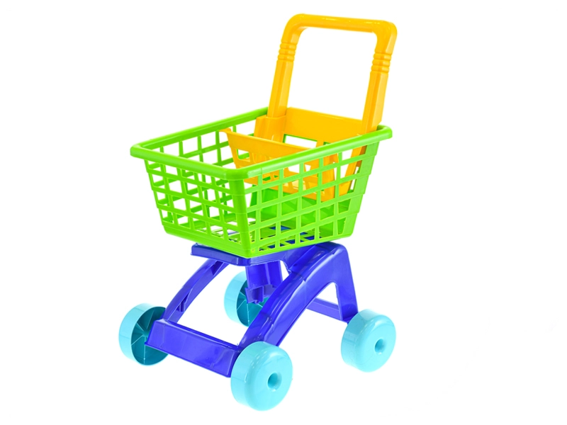 Dziecięcy wózek sklepowy w zielonym kolorze to idealna zabawka do realistycznych zabaw w sklep i dom. Dzięki wysokości 58 cm wygodnie się go trzyma i pcha, a gładka powierzchnia oraz zastosowany materiał łatwo utrzymać w czystości. Doskonale uzupełni dziecięcą kuchnię lub kącik z towarami i zapewni godziny zabawy.