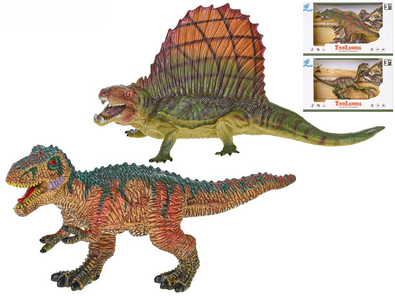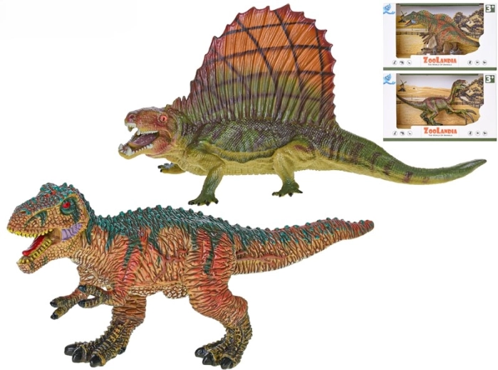 Gatunki w kolekcji: T-Rex (drapieżny król z otwartą paszczą), Dimetrodon (charakterystyczny grzbietowy żagiel), Acrocanthosaurus (imponujący teropod) oraz Therizinosaurus (długie pazury). Figurki wykonano z wytrzymałego plastiku, a dzięki wysokiej jakości wykonania wytrzymają nawet dynamiczną zabawę.