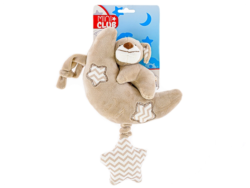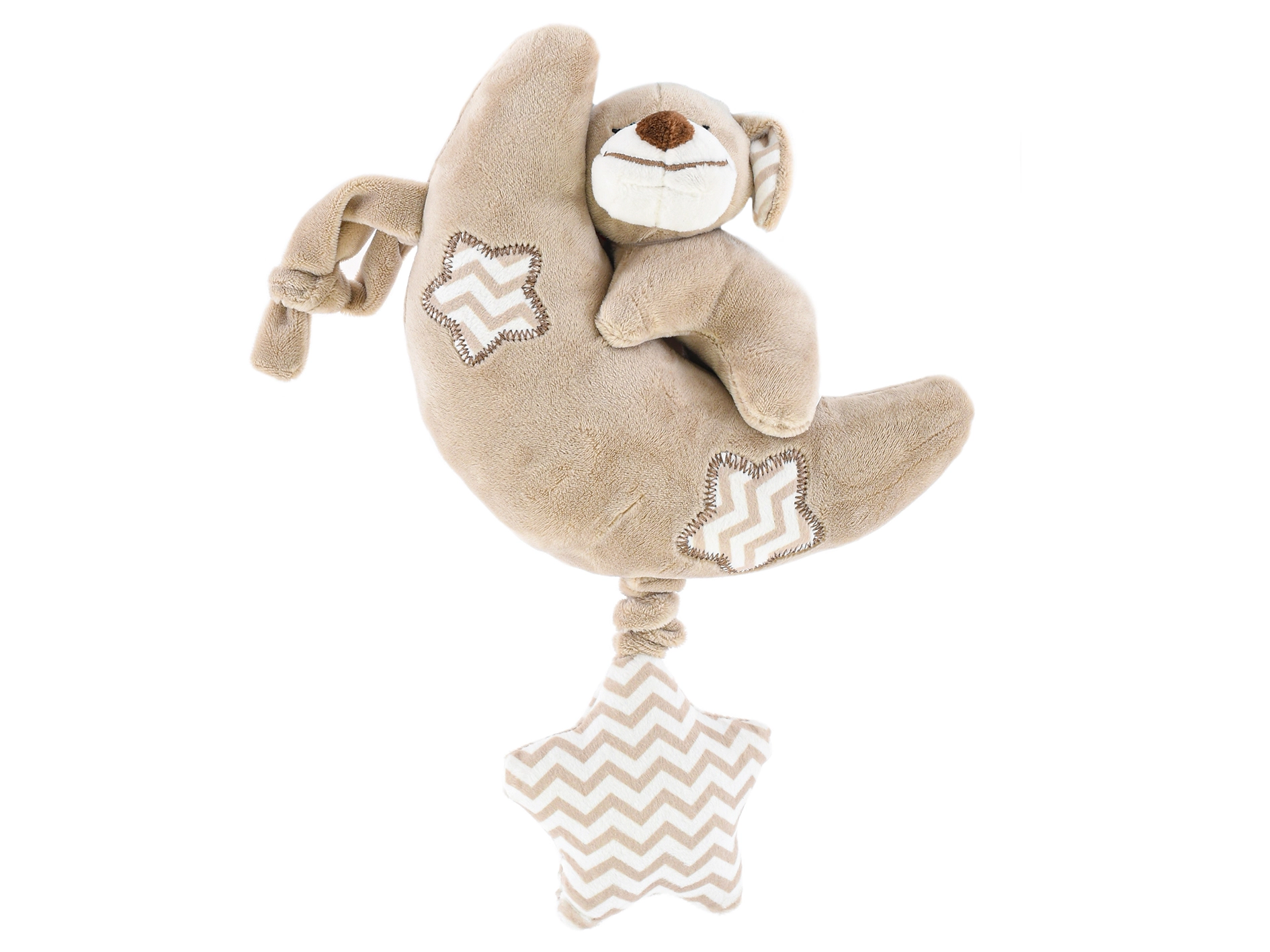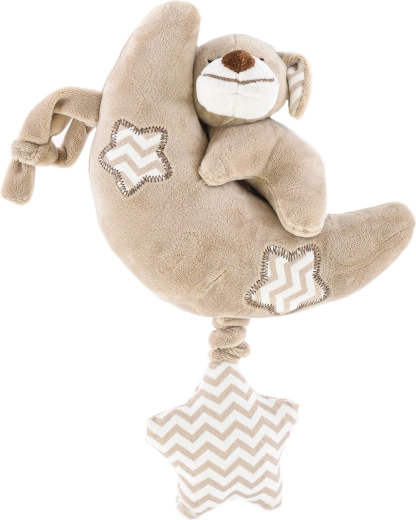 Uczyń zasypianie spokojniejszym dzięki uroczemu księżycowi z pieskiem od Mini Club. Po pociągnięciu za gwiazdkę uruchamia się kojąca melodia, która pomaga maluszkom łatwiej zasnąć i czuć się bezpiecznie. Miękki plusz łagodny dla wrażliwej skóry, praktyczna pętelka do przymocowania oraz neutralny design sprawiają, że to świetny wybór dla noworodków.