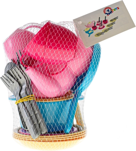 Podaruj dzieciom własną kuchnię ze wszystkim, co do niej należy. Dziecięcy zestaw naczyń w praktycznej siateczce oferuje kompletne wyposażenie do zabawy w gotowanie – od przygotowywania potraw aż po podwieczorek przy herbacie. Elementy są lekkie, bezpieczne i kolorowe, dzięki czemu dzieci szybko je pokochają.
