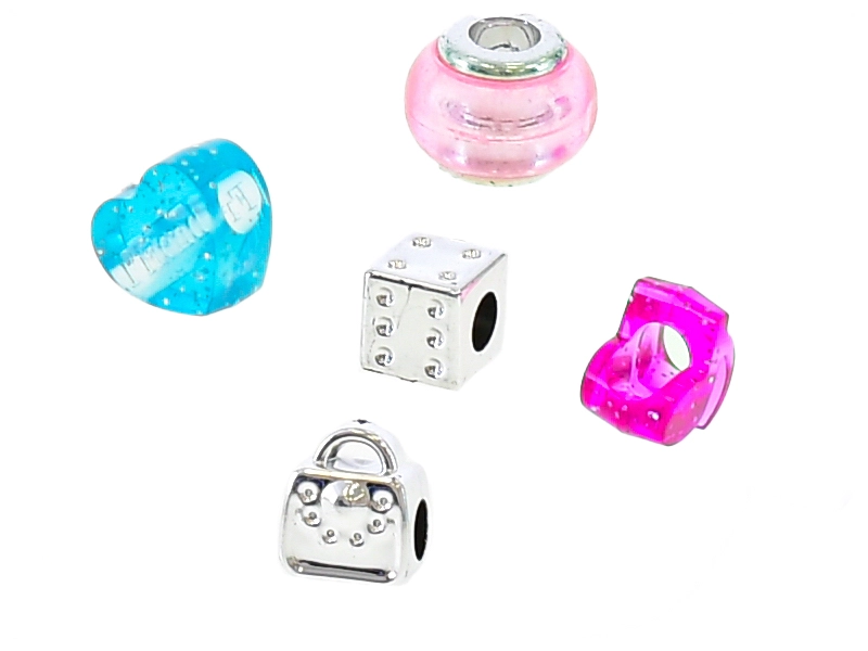 Koraliki i zawieszki z dużym otworem pozwalają dzieciom szybko zmieniać wygląd bransoletki i tworzyć oryginalne kompozycje bez pomocy dorosłych.