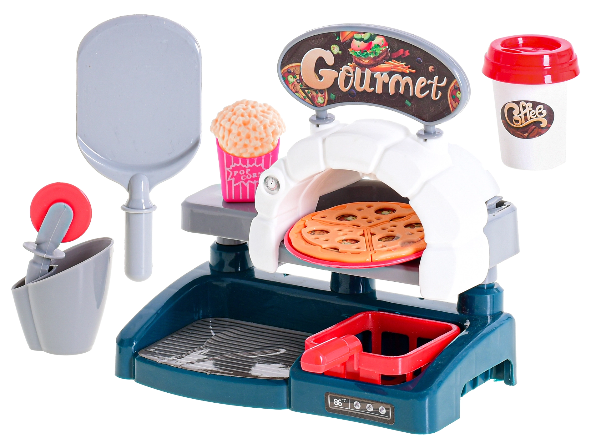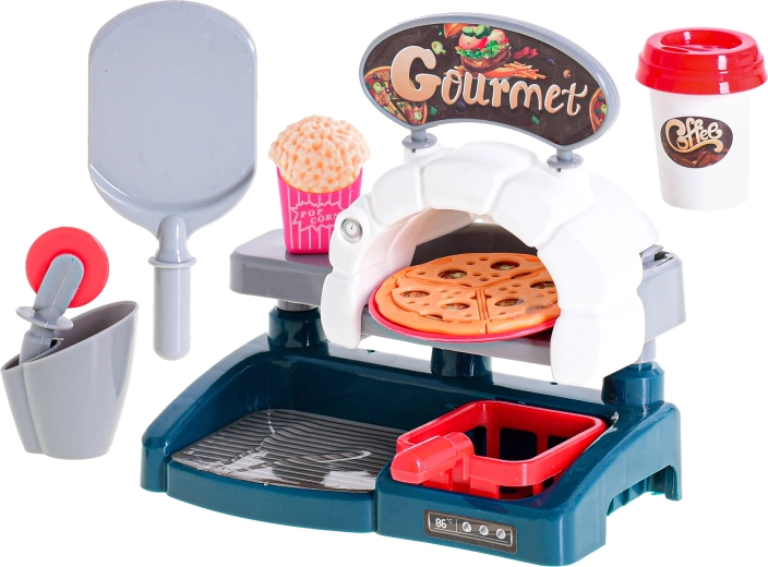 - Piekarnik do pizzy i dodatki do realistycznej zabawy w pizzerię.