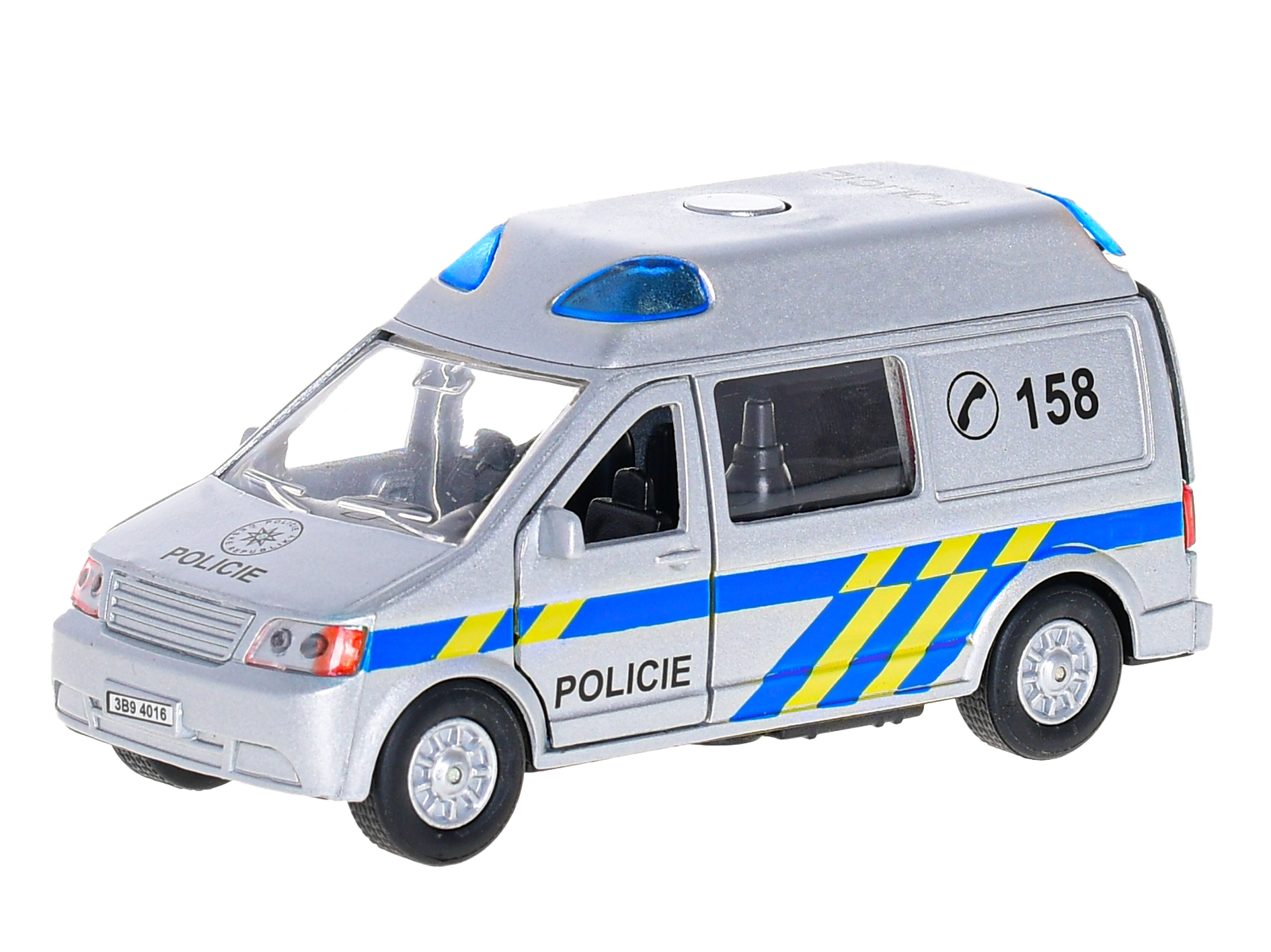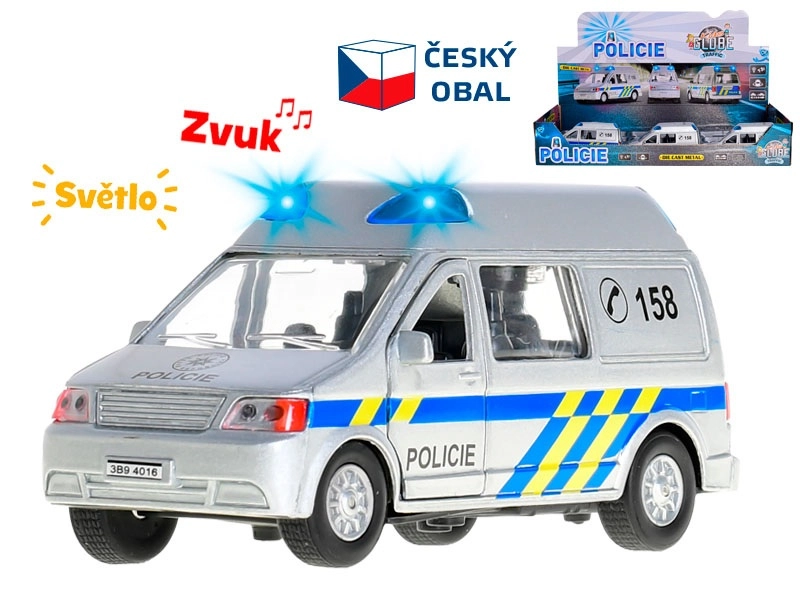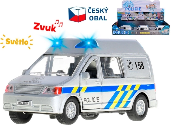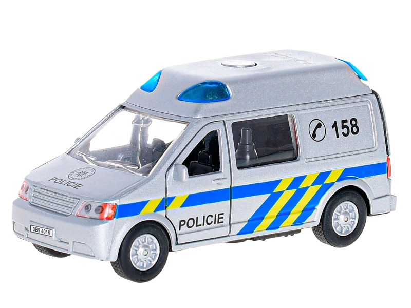 Model policyjnego vana Kids Globe Traffic w oficjalnym czeskim wzornictwie ucieszy małych stróżów prawa. Oferuje napęd typu pull-back, efekty świetlne i dźwiękowe oraz wytrzymałe wykonanie z metalu i plastiku. Dzięki bateriom LR44 w zestawie zabawka jest od razu gotowa do jazdy i odpowiednia dla dzieci od 3 lat.
