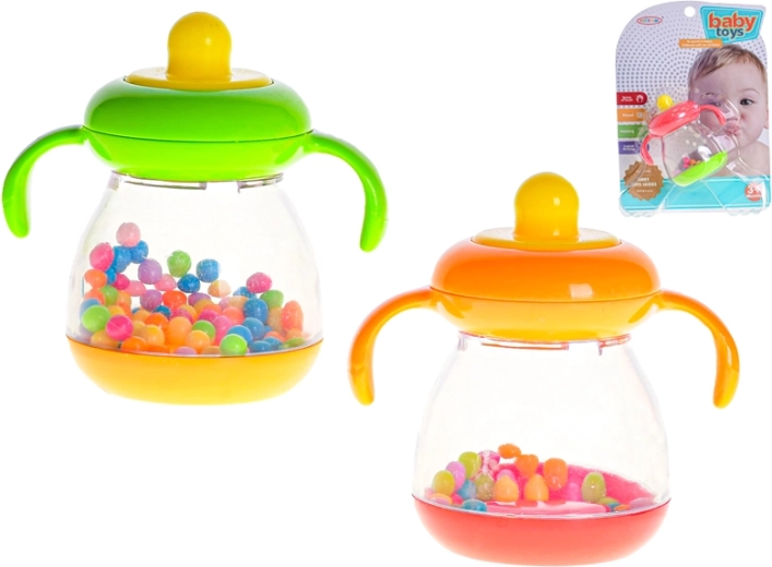 Pobudza zmysły Twojego maluszka już od pierwszych miesięcy. Ta lekka i łatwa do chwytania grzechotka w kształcie buteleczki o długości 8 cm jest idealna dla małych rączek. Oferuje delikatny dźwięk grzechotania rozwijający słuch i koordynację oraz występuje w trzech radosnych kolorach (zielonym, pomarańczowym, czerwonym). Odpowiednia dla dzieci od 3 miesięcy.