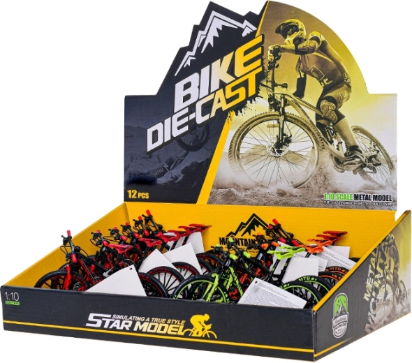 Ten szczegółowo wykonany model roweru górskiego, idealny do zabawy i ekspozycji, zapewnia wierne proporcje i wysoką jakość wykonania. Metalowe elementy dodają solidności, a plastikowe części gwarantują precyzyjne detale i niską wagę. Dostępny w trzech atrakcyjnych kolorach – czerwonym, żółtym i pomarańczowym – aby każdy mógł wybrać coś w swoim stylu.