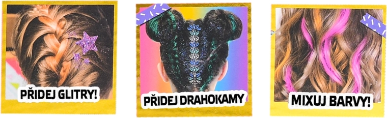 - Kredy do włosów, kryształki, szablony, żel, brokat