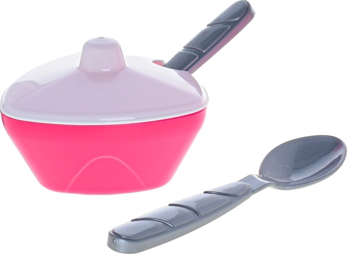 Ten różowo-czerwony zestaw do herbaty z deserami i owocami jest idealny na dziecięce podwieczorki, gotowanie i serwowanie. Dzięki lekkim i solidnym plastikowym elementom dzieci łatwo nim manipulują, a zestaw wspiera ich wyobraźnię, małą motorykę oraz zabawę społeczną.