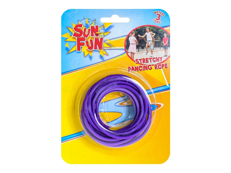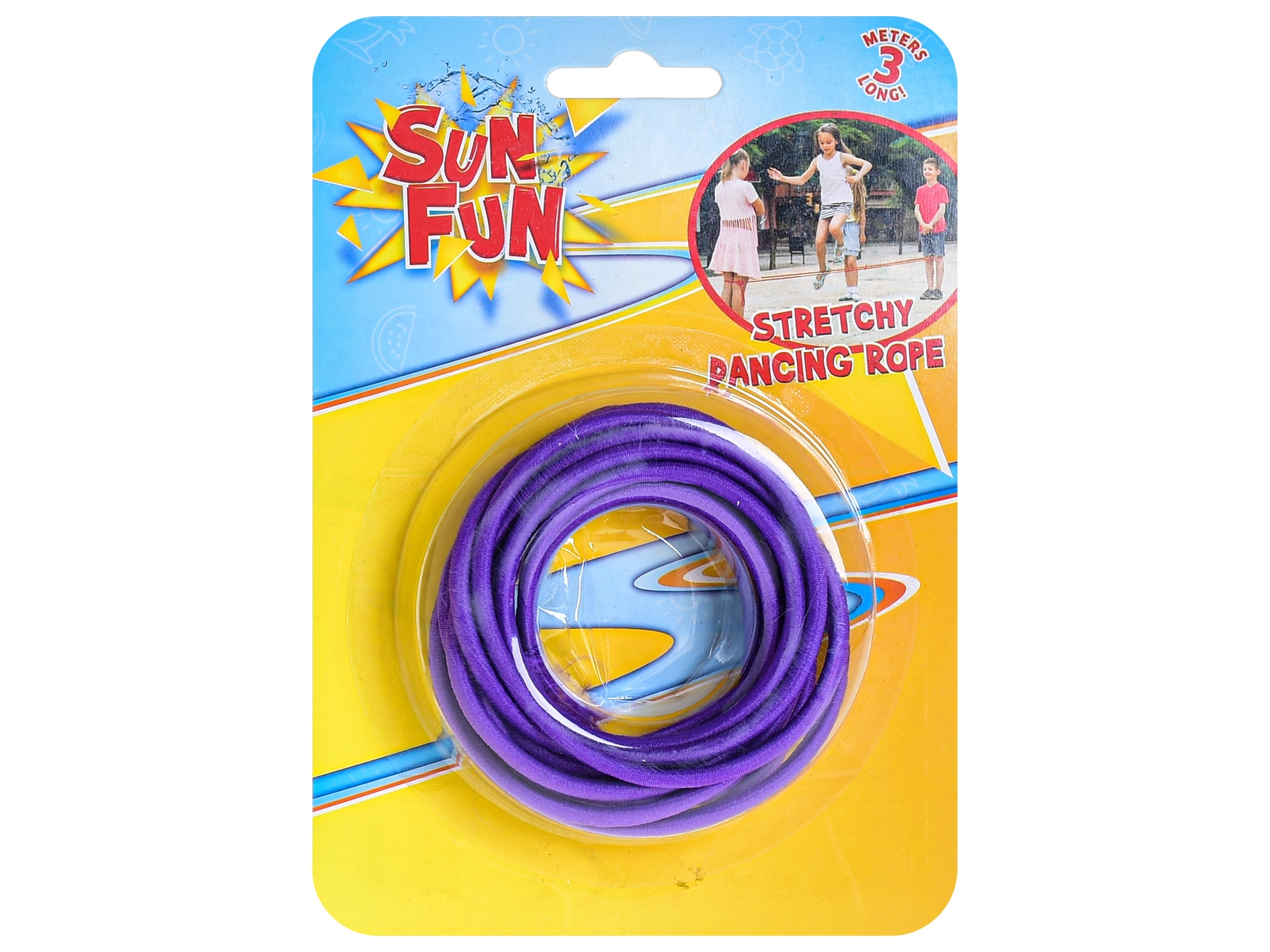 Guma do skakania Sun Fun przywraca ulubioną dziecięcą zabawę, która rozwija umiejętności ruchowe i wyobraźnię. Dzięki długości 300 cm świetnie nadaje się do zabawy w duecie i w większej grupie dzieci. Wytrzymały i elastyczny materiał zapewnia stabilne napięcie i przyjemne skakanie.