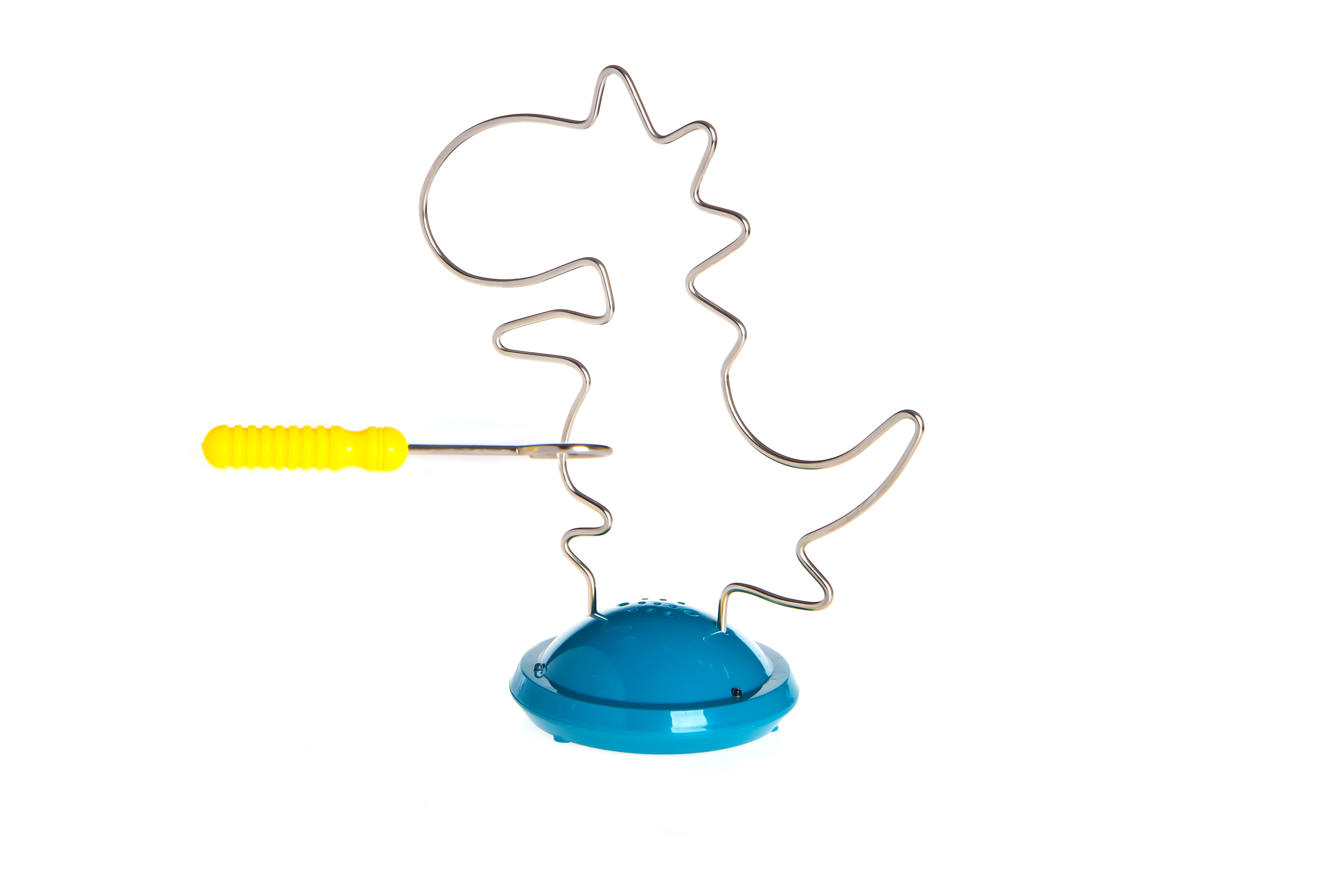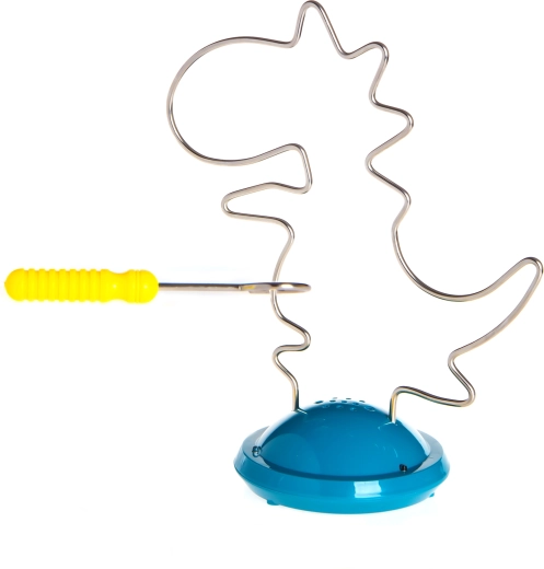 Interaktywna łamigłówka w kształcie dinozaura łączy zabawę i naukę: zadaniem jest prowadzenie metalowej pętli po torze bez dotykania. Przy kontakcie uruchamia się sygnalizacja dźwiękowa, która motywuje do większej precyzji. Zabawa wspiera koordynację ręka–oko, rozwija małą motorykę i dzięki świetlnym oraz dźwiękowym efektom zachęca dzieci do powtarzalnej gry. Wytrzymałe wykonanie z tworzywa sztucznego i metalu, odpowiednie dla dzieci od 3 lat.