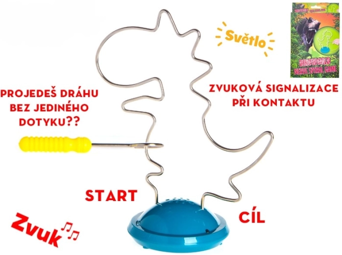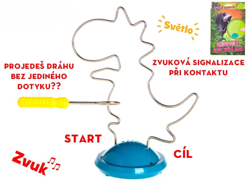Odkryj zabawną i edukacyjną łamigłówkę, która zamienia trening motoryki w ekscytujące wyzwanie. Dzieci prowadzą metalową pętlę po torze dinozaura, starając się unikać dotyku – gdy tylko dojdzie do kontaktu, rozlega się sygnalizacja dźwiękowa i włączają się świetlne efekty. Zabawa naturalnie wspiera koncentrację, precyzję i cierpliwość.