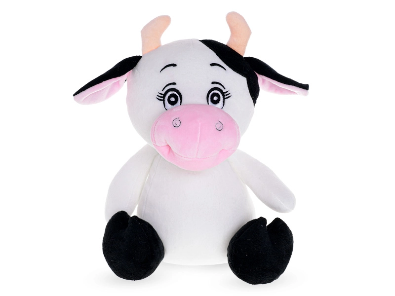 Stabilny, siedzący kształt pozwala łatwo postawić krówkę na półce, komodzie czy w łóżeczku jako uroczą dekorację.