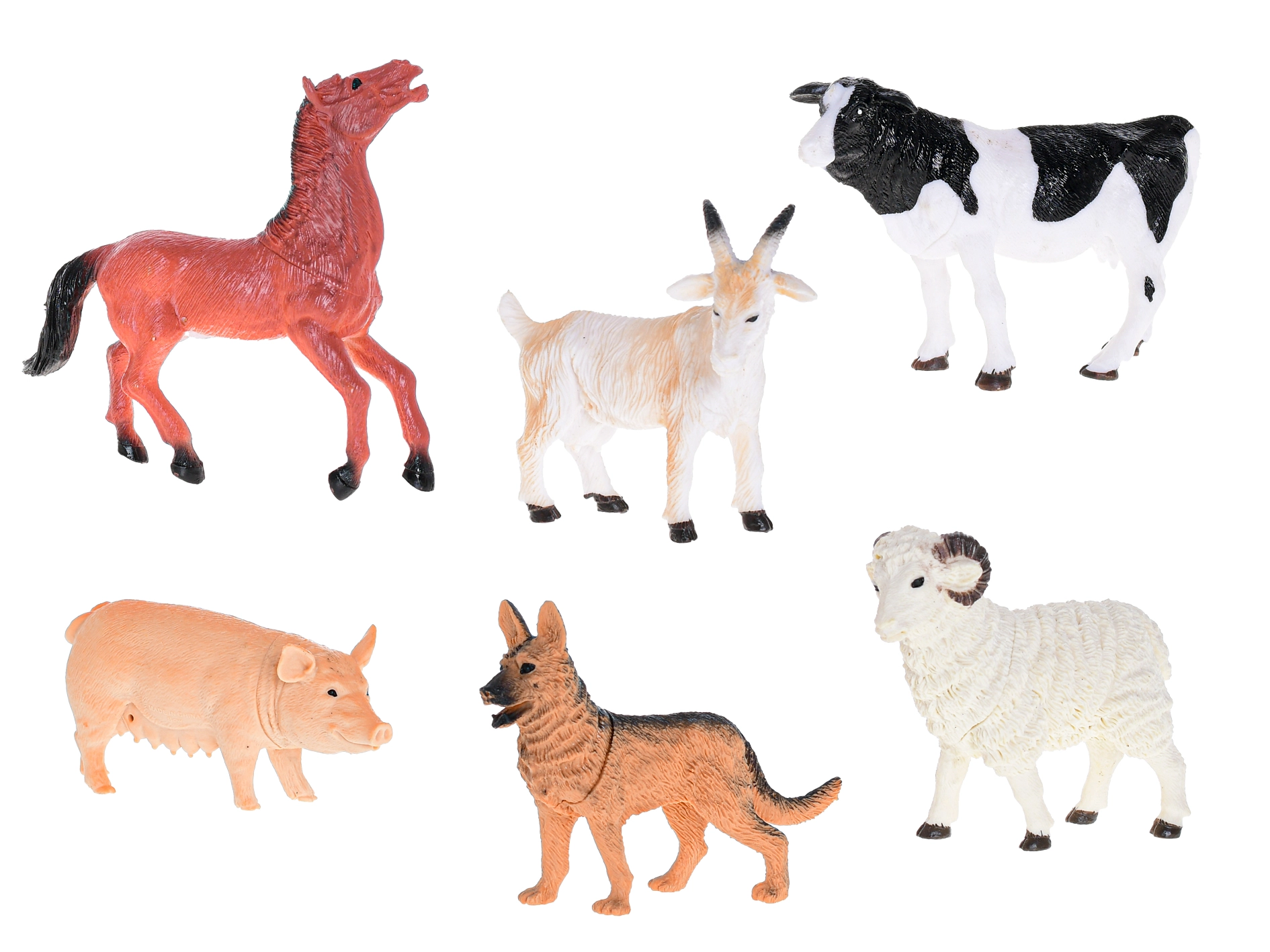 - 6 gatunków zwierząt: świnia, koza, baran, koń, pies, krowa