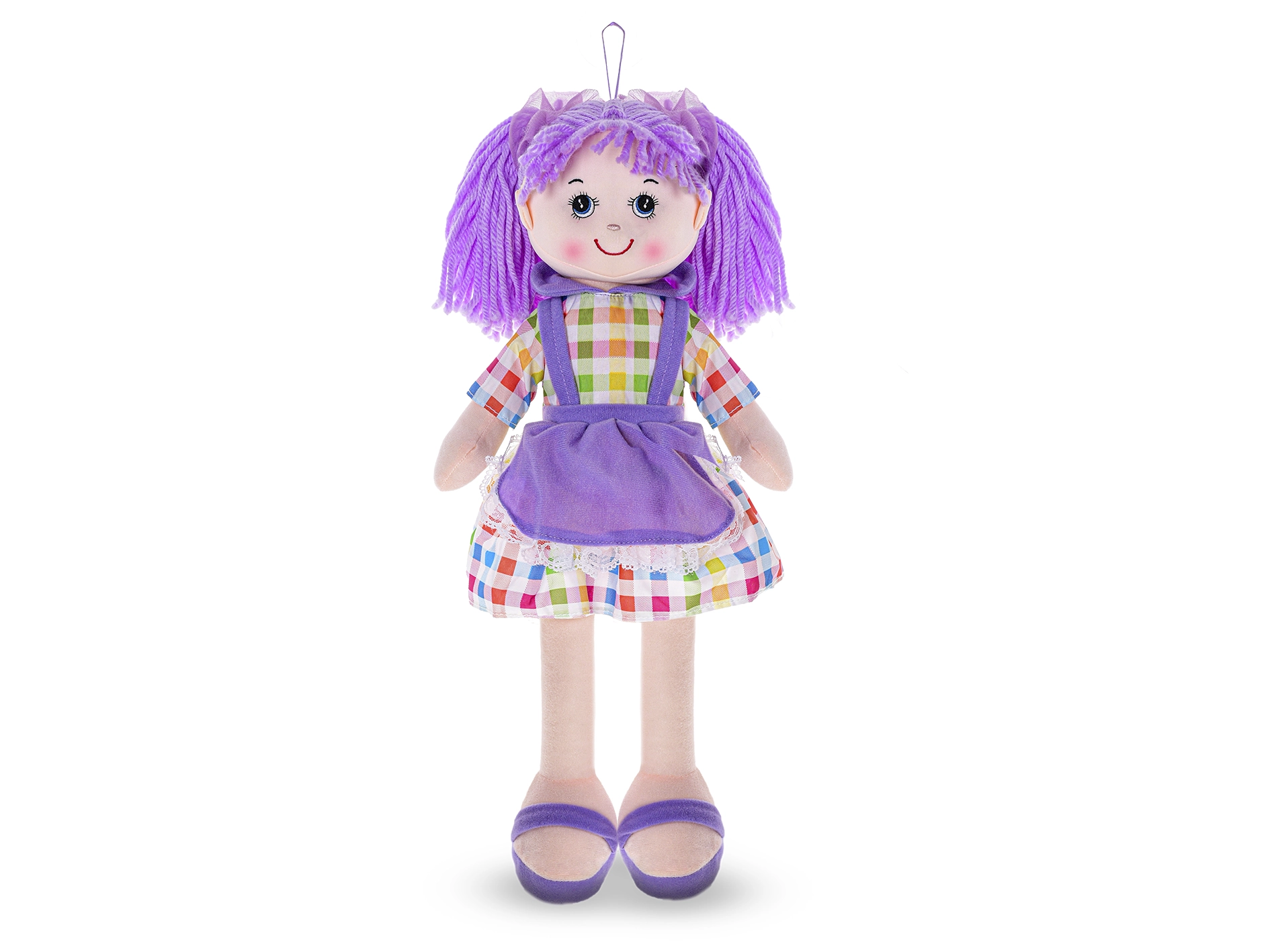 Fioletowa sukienka i włosy z wełny nadają lalce autentyczny wygląd, który dzieci uwielbiają. Dzięki wysokości 50 cm jest stworzona do przytulania, zabawy w mamę i wspólnego zasypiania.