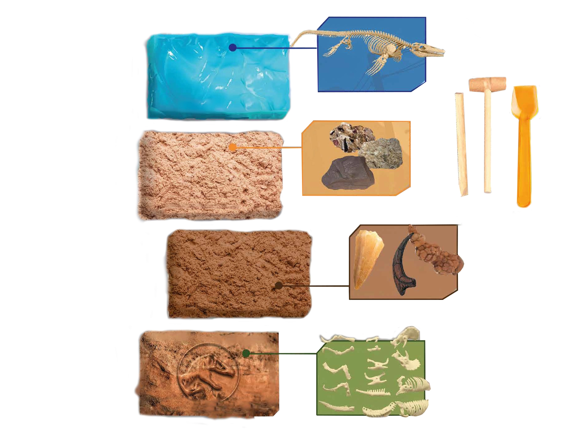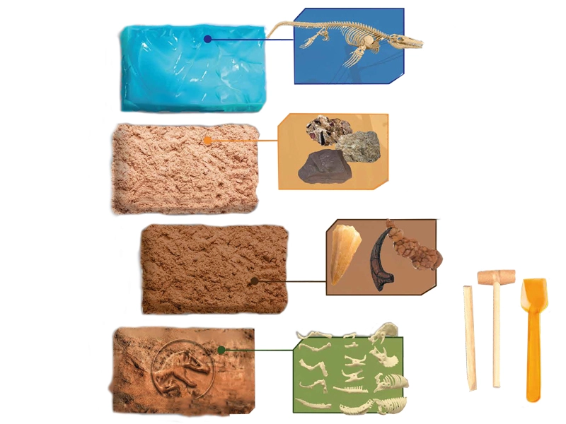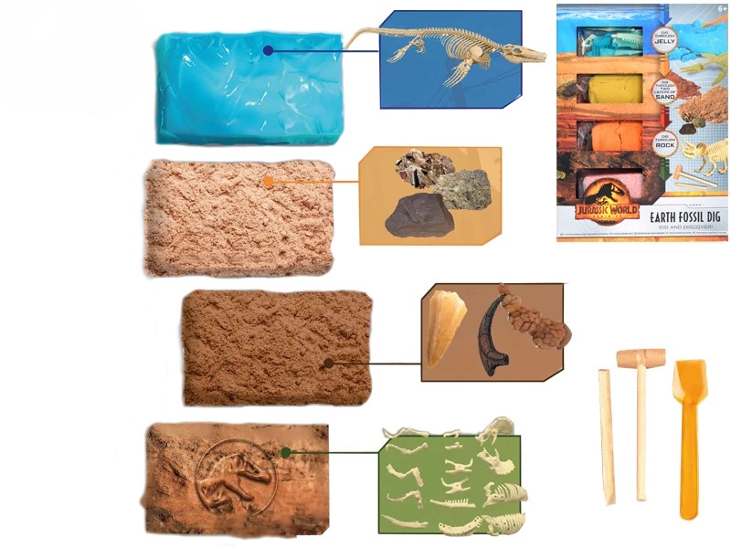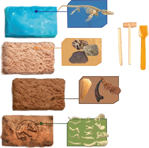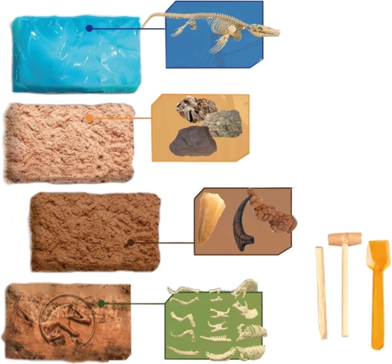 - 4 różne skamieliny do odkrycia – więcej zabawy i odkryć.