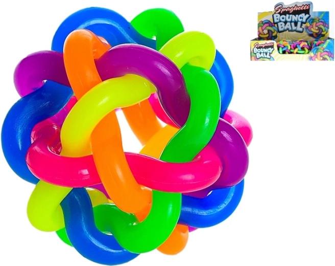 Kolorowa skacząca piłeczka o unikalnym designie splecionych „spaghetti” przyciąga wzrok od pierwszego spojrzenia i wnosi do zabawy mnóstwo radości. Jej nieoczekiwane odbicia pobudzają ruch, spostrzegawczość oraz koordynację ręka-oko, dlatego to świetny wybór dla aktywnych dzieci.