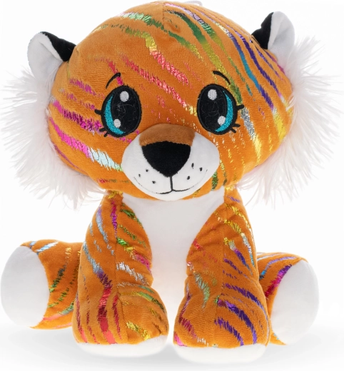 Pluszowy tygr STAR SPARKLE to towarzysz, którego dzieci pokochają od pierwszego dotyku. Wykonany z miękkiego pluszu, przyjemnego i bezpiecznego także dla najmłodszych. Siedzące wykonanie zapewnia zabawce stabilność i uroczy wygląd, a połyskujące, tęczowe detale podkreślają jego magiczny design.