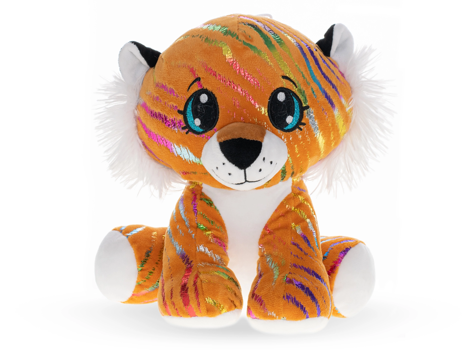 Uroczy pluszowy tygr STAR SPARKLE ucieszy dzieci już od urodzenia swoim mięciutkim materiałem, pomarańczowym wykończeniem oraz połyskującymi, tęczowymi detalami. Dzięki wysokości 16 cm jest idealny do przytulania i zabawy, a dzięki bezpiecznej, delikatnej fakturze jest łagodny dla dziecięcej skóry.