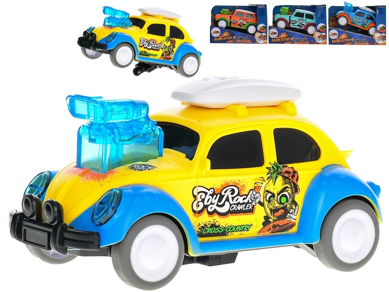 Zabawny samochodzik na napęd cierny, który podczas jazdy wykonuje tańczące ruchy, zachwyci dzieci kolorowym designem i wspiera ich wyobraźnię oraz motorykę. Dzięki wytrzymałemu plastikowi oraz wyborowi kilku wariantów nadwozia i kolorów zapewnia długą i kreatywną zabawę.