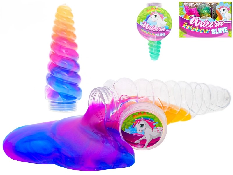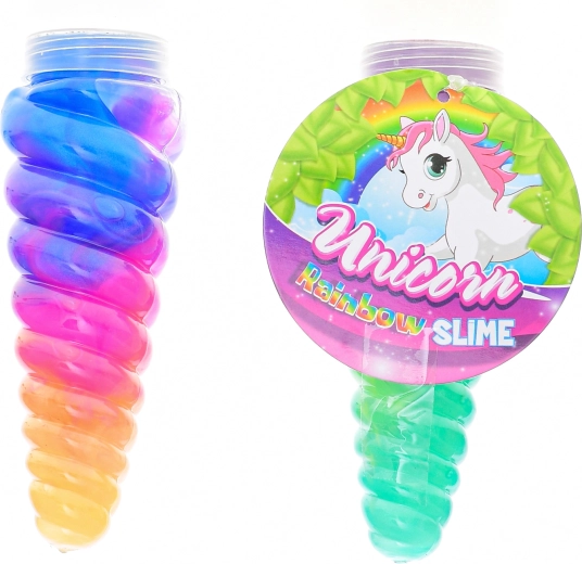 Odkryj magię i zabawę z zabawką Róg jednorożca z tęczowym slime’em! Przezroczysty róg o długości 13,5 cm jest wypełniony 115 g miękkiego, wielokolorowego slime’u, idealnego do ściskania, rozciągania i formowania. Świetnie rozwija małą motorykę i percepcję sensoryczną dzieci. Odpowiednie od 3 lat, dostępne w różnych kombinacjach kolorystycznych.