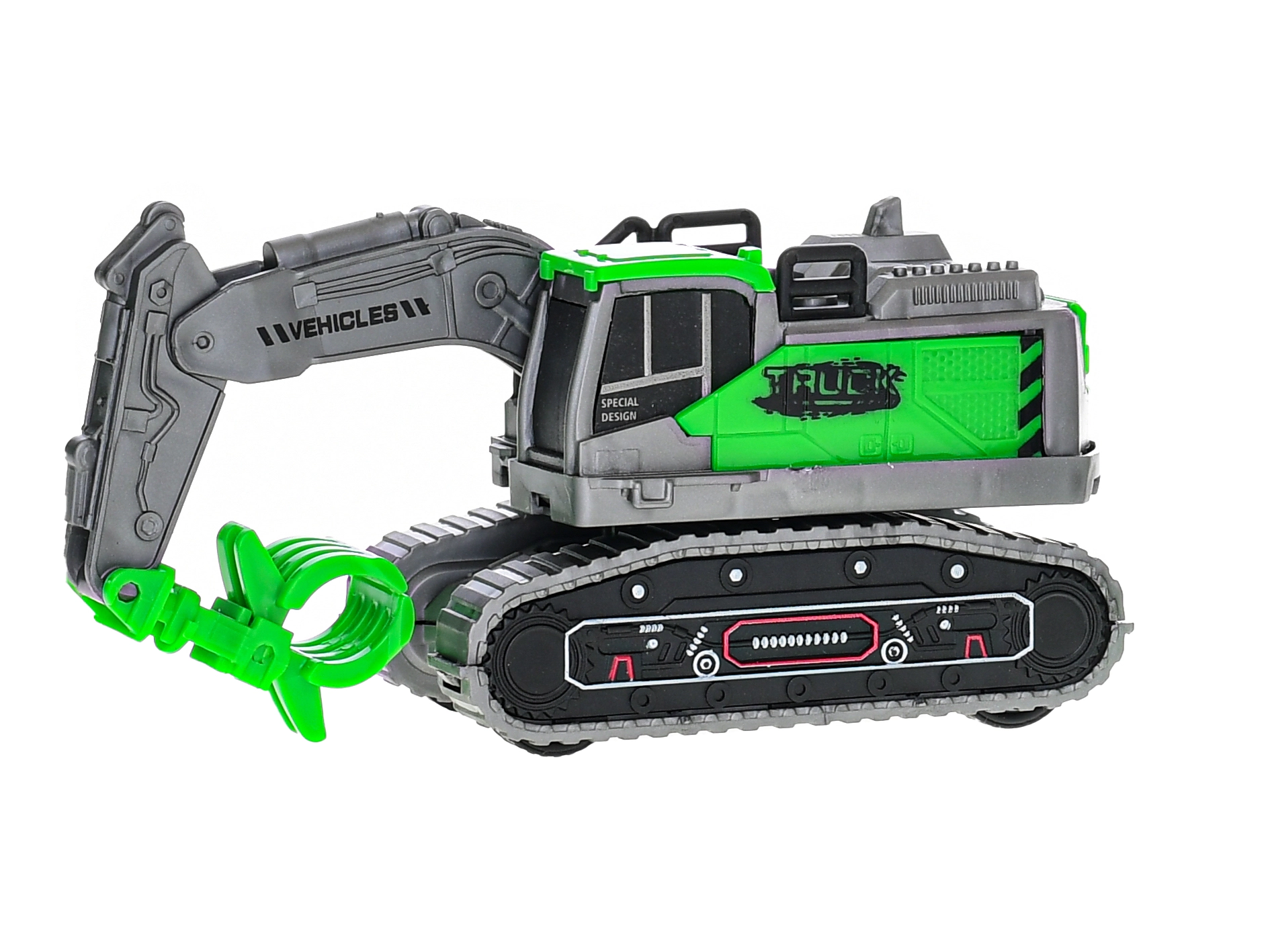 Odkryj zabawną i wytrzymałą kolekcję zielonych pojazdów budowlanych z napędem sprężynowym, która zapewnia dzieciom godziny kreatywnej zabawy. Modele o długości 11,5 cm wykonane są z wysokiej jakości plastiku z dopracowanymi detalami, dzięki czemu wyglądają jak prawdziwe maszyny. Idealne do zabawy na dywanie i twardszych powierzchniach.
