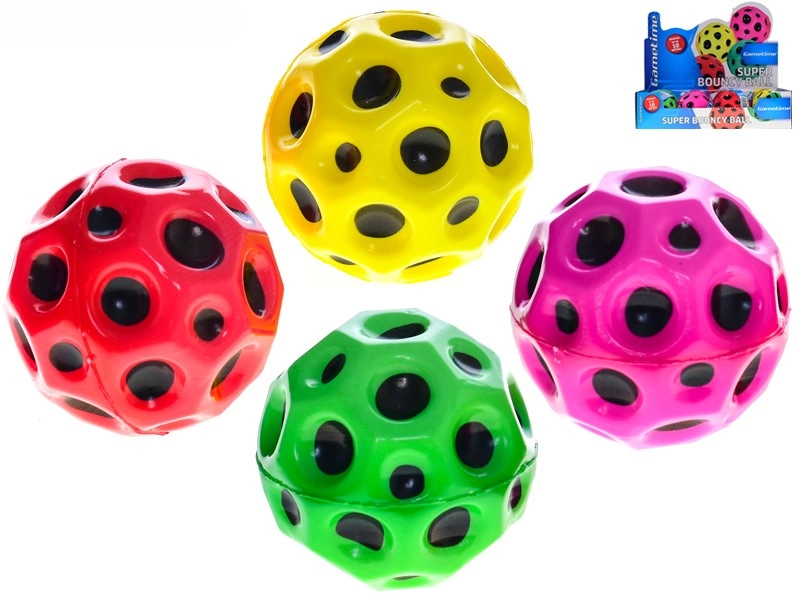 Lekka i bezpieczna piankowa piłka skacząca o średnicy 7 cm od GAMETIME dla dzieci od 3 lat. Dzięki wysokiemu odbiciu i żywym kolorom (różowy, zielony, czerwony, żółty) wspiera motorykę, koordynację ręka–oko oraz aktywną zabawę w domu i na zewnątrz.