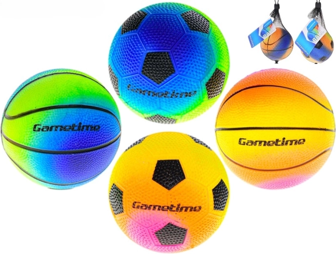 Tęczowa piłka GAMETIME o średnicy 10 cm to idealny towarzysz codziennej zabawy. Dzięki lekkiej konstrukcji i trwałemu plastikowi wytrzymuje intensywne użytkowanie, a jednocześnie jest bezpieczna dla dzieci od 3 lat. Kolorowe wykonanie i sportowe motywy przyciągają uwagę i zachęcają do ruchu.