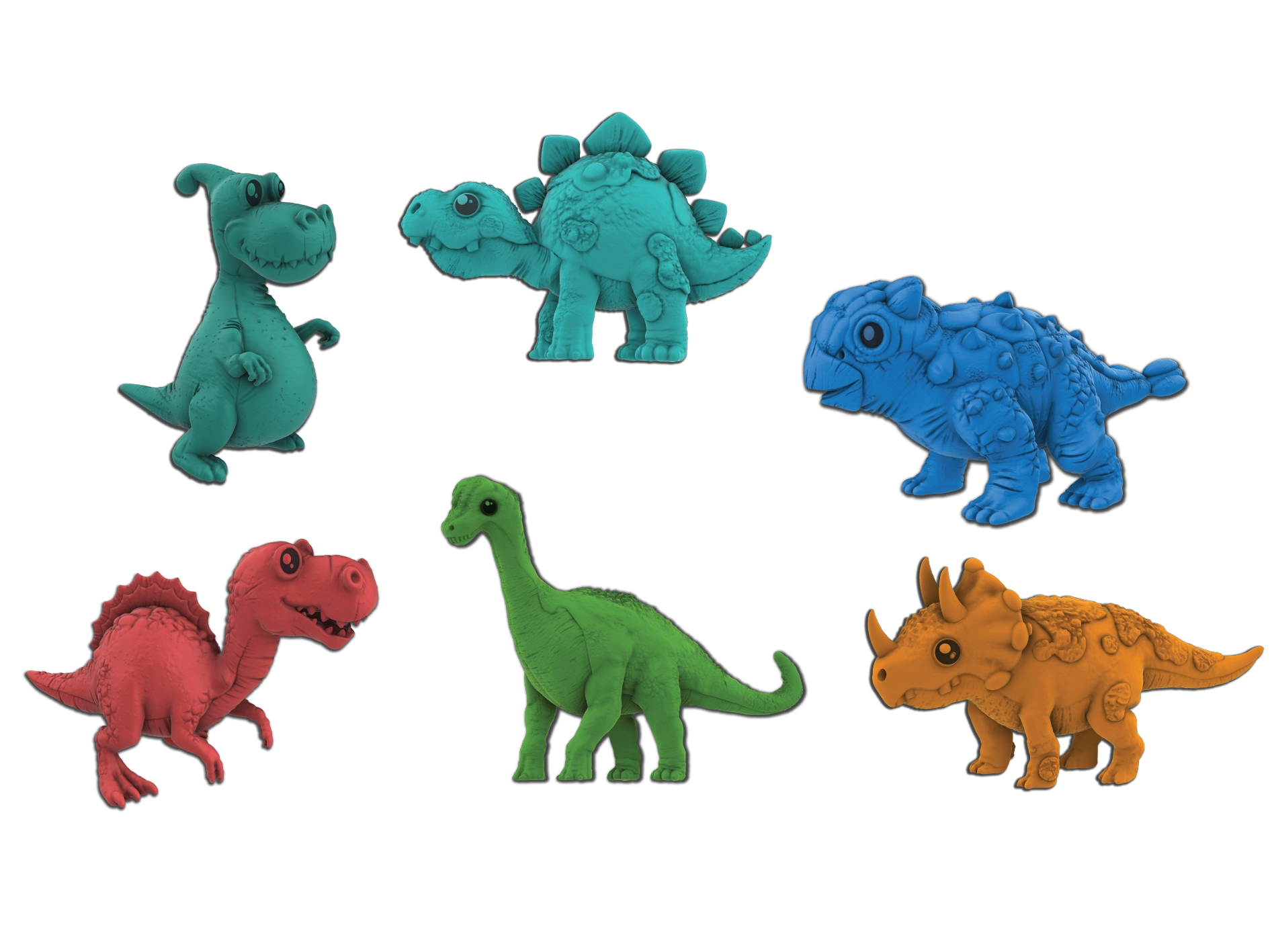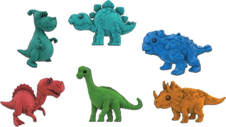 Jajka są dostępne w dwóch kolorach – czerwonym i pomarańczowym – i losowo kryją jednego z ośmiu gatunków dinozaurów: T‑Rex, Brontozaur, Stegozaur, Triceratops, Parazaurolof, Ankylozaur, Spinozaur lub Plezjozaur. Konkretny kolor i gatunek nie mogą być wybrane z góry, co gwarantuje element niespodzianki przy każdym zakupie.