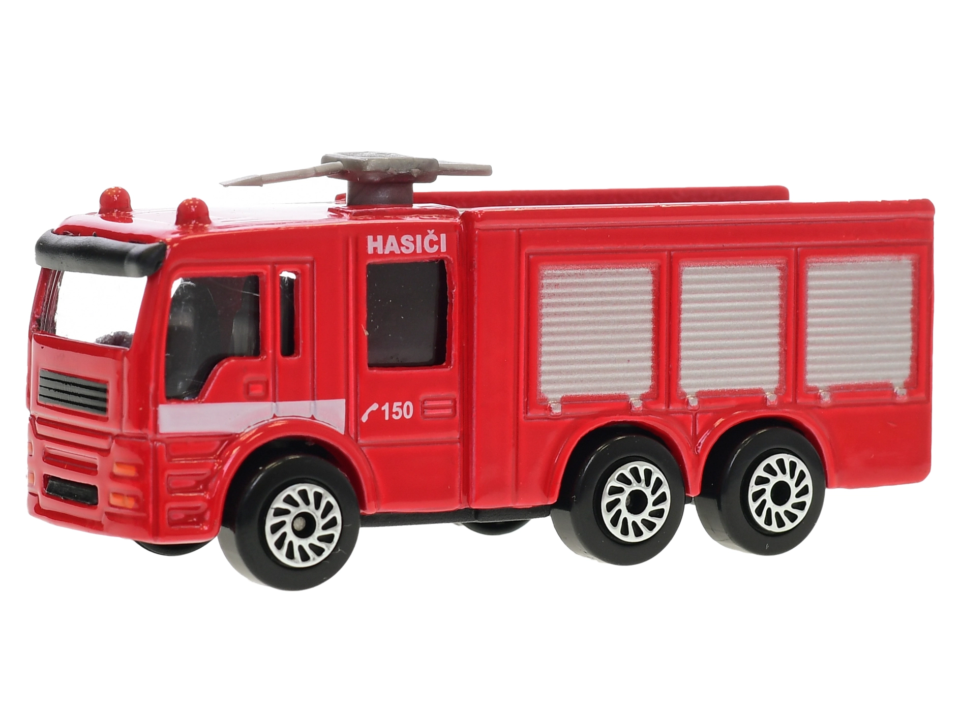 Autko z wolnobieżnymi kółkami jest gotowe do akcji od razu po rozpakowaniu. Opakowanie na karcie z czeskim designem „Hasiči 150” ucieszy małych fanów ratowników, a dzięki kompaktowym wymiarom z łatwością zmieści się w plecaku lub szufladzie.