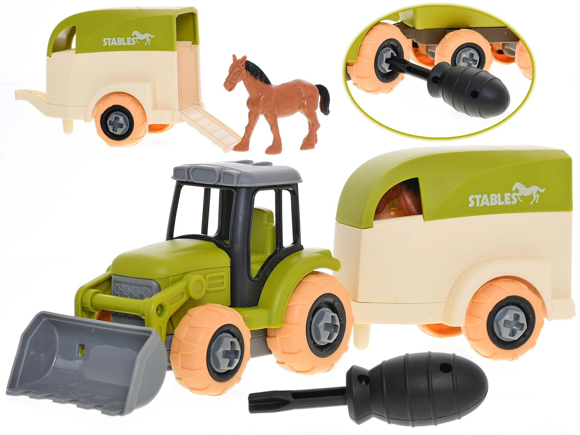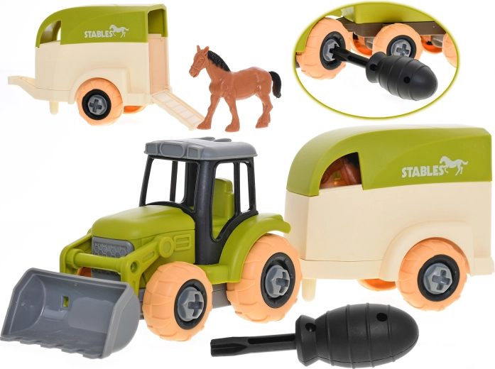 - Traktor, przyczepa, figurka konia, śrubokręt