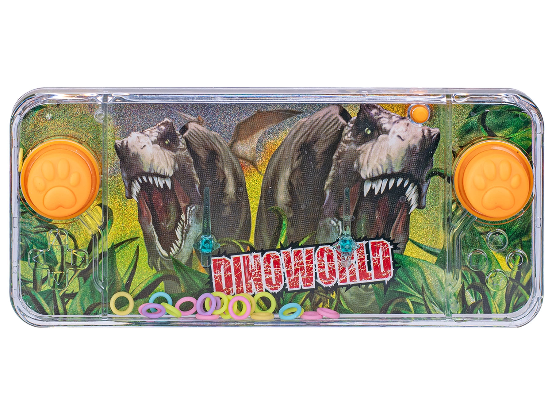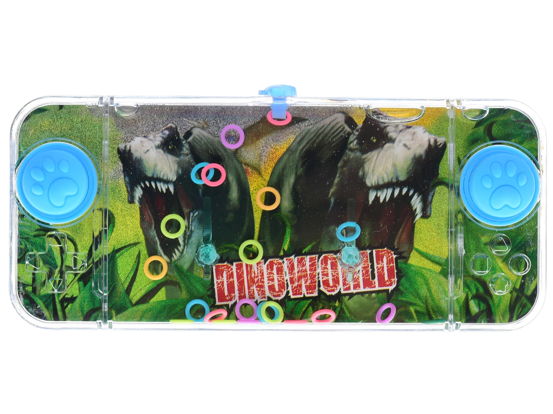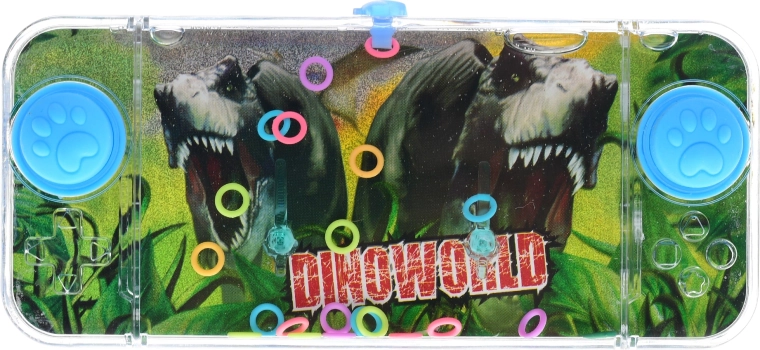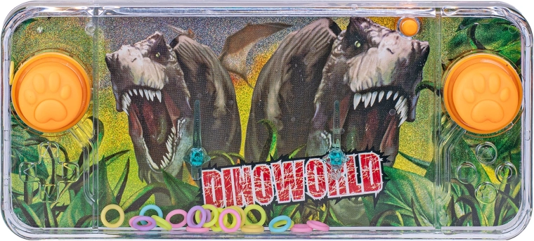 Odkryj klasyczną wodną grę z motywem dinozaurów, która zajmie dzieci w domu i w podróży. Prostym naciśnięciem przycisków wprawiasz wodę w ruch i zaczepiasz pływające kółka na spiczastych słupkach. Gra rozwija cierpliwość, koncentrację i koordynację ręka–oko.