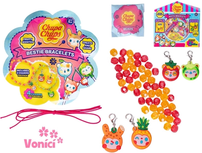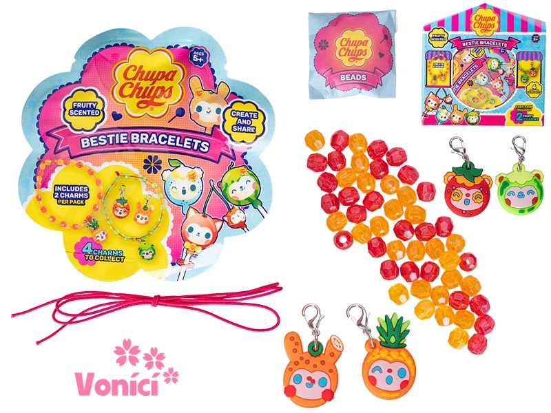 Odkryj zabawne i kreatywne pachnące bransoletki przyjaźni CHUPA CHUPS dla dzieci od 5 lat. W opakowaniu znajdziesz 2 lekkie plastikowe bransoletki z zawieszkami, które dzieci mogą składać według własnej wyobraźni. Każda bransoletka przyjemnie pachnie, więc to nie tylko stylowy dodatek, ale także doznanie sensoryczne. Świetne do rozwijania kreatywności i motoryki małej oraz idealne do dzielenia się z przyjacielem lub rodzeństwem.