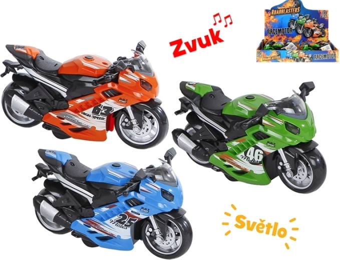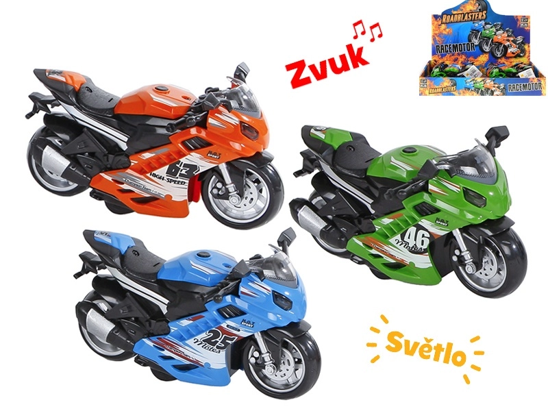 Plastowy motocykl Roadblasters o długości 14,5 cm zachwyci małych fanów motocykli. Dzięki napędowi bezwładnościowemu po naciągnięciu sam rusza do przodu, a efekty świetlne i dźwiękowe potęgują realistyczne wrażenia i wspierają rozwój umiejętności motorycznych. Dostępny w trzech kolorach, z bateriami w zestawie, odpowiedni od 3 lat.