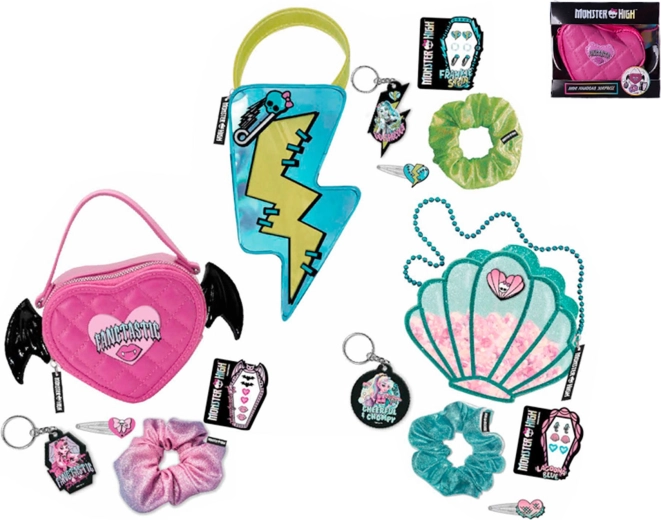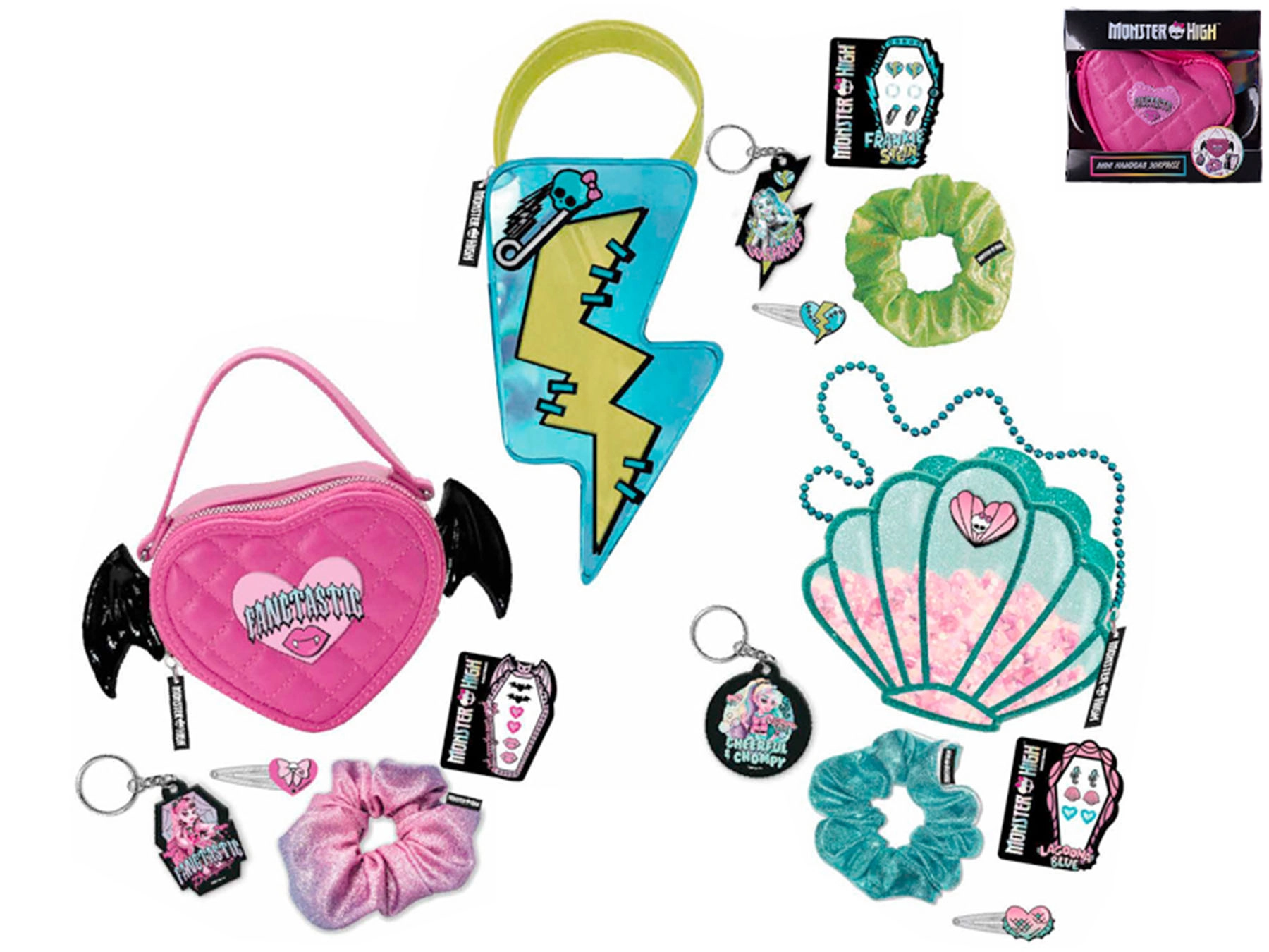 Odkryj urok serii MONSTER HIGH z uroczą mini torebką, która ucieszy każdą małą elegantkę. Trzy oryginalne motywy – muszla, błyskawica i serce – nawiązują do ulubionych postaci i ich niepowtarzalnego stylu. Każde wykonanie uzupełniono stylowymi drobiazgami, które współgrają z osobowością danej postaci.
