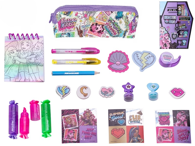 - kredki, flamastry, ołówki, naklejki z postaciami Monster High