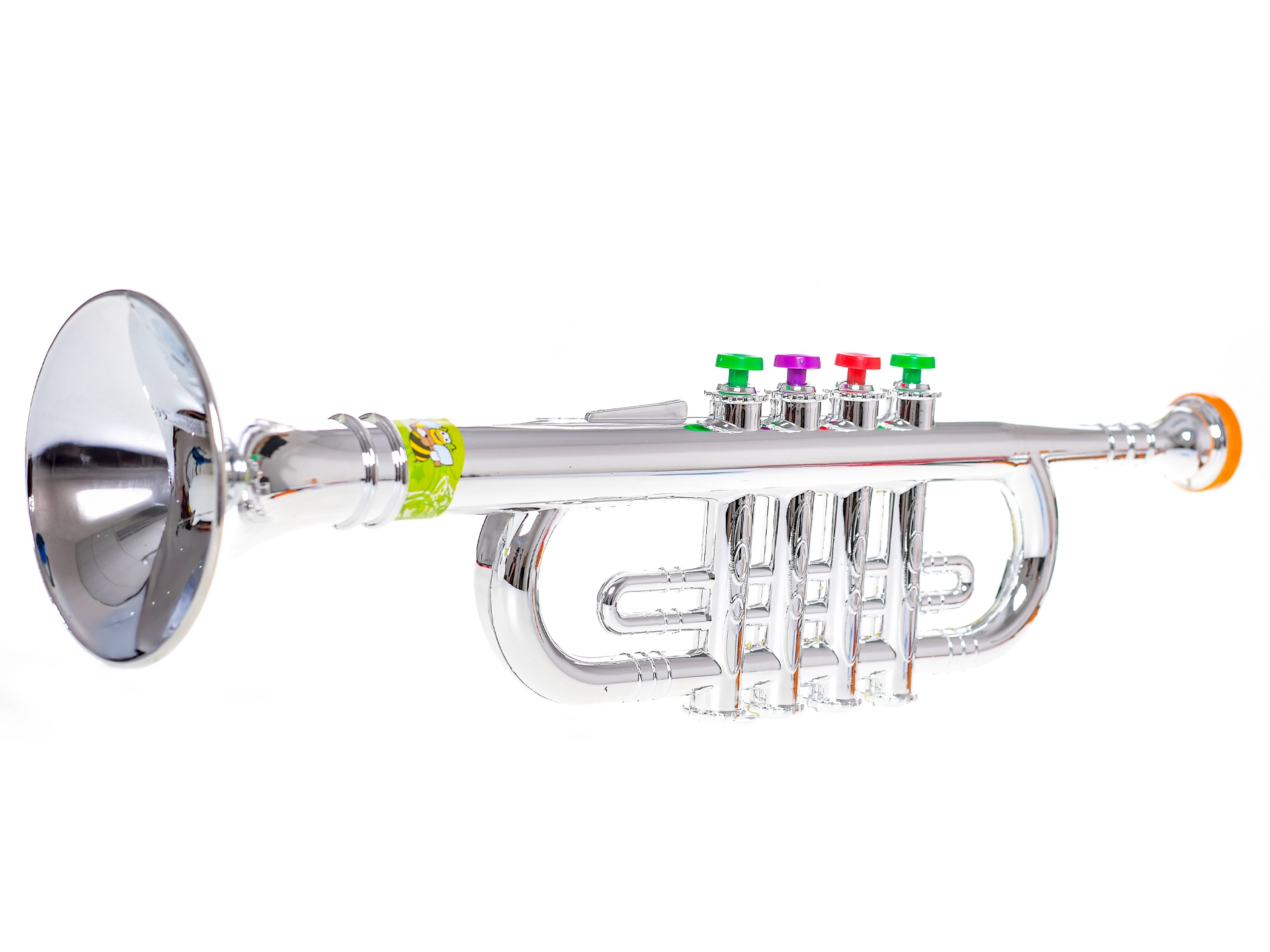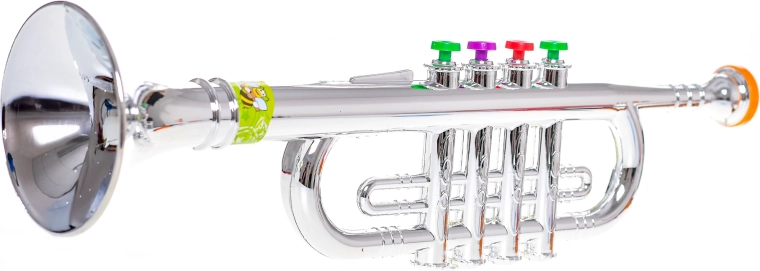 Ta dziecięca trąbka to świetny wybór na pierwsze spotkanie ze światem muzyki. Dzięki lekkiej konstrukcji i wygodnemu chwytowi nadaje się dla dzieci od 3 lat. Błyszczący srebrny wygląd jest atrakcyjny, a cztery kolorowe klapki pomagają w przystępny sposób odkrywać różne tony i rytmy.