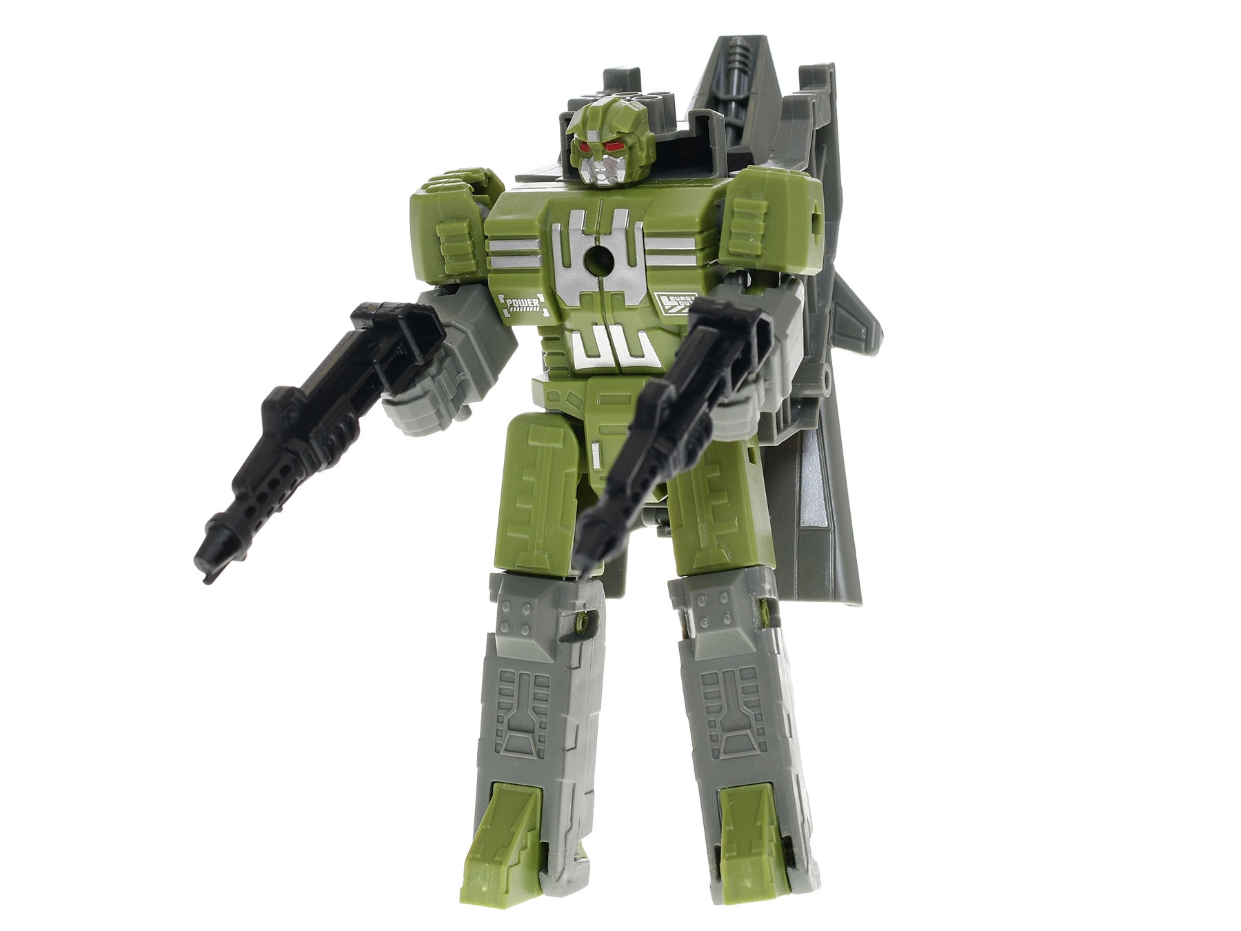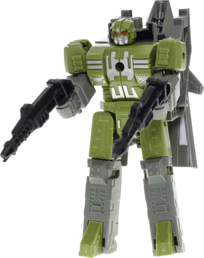 Odkryj zabawę 2 w 1: ta innowacyjna zabawka płynnie zmienia się z myśliwca w robota i z powrotem. Wspiera kreatywność, rozwija motorykę małą i dzięki kompaktowym wymiarom doskonale leży w małych dziecięcych dłoniach. Dostępna w dwóch kolorach – szarym i zielonym – oraz wykonana z trwałego plastiku dla długiej żywotności. Odpowiednia dla dzieci od 3 lat.