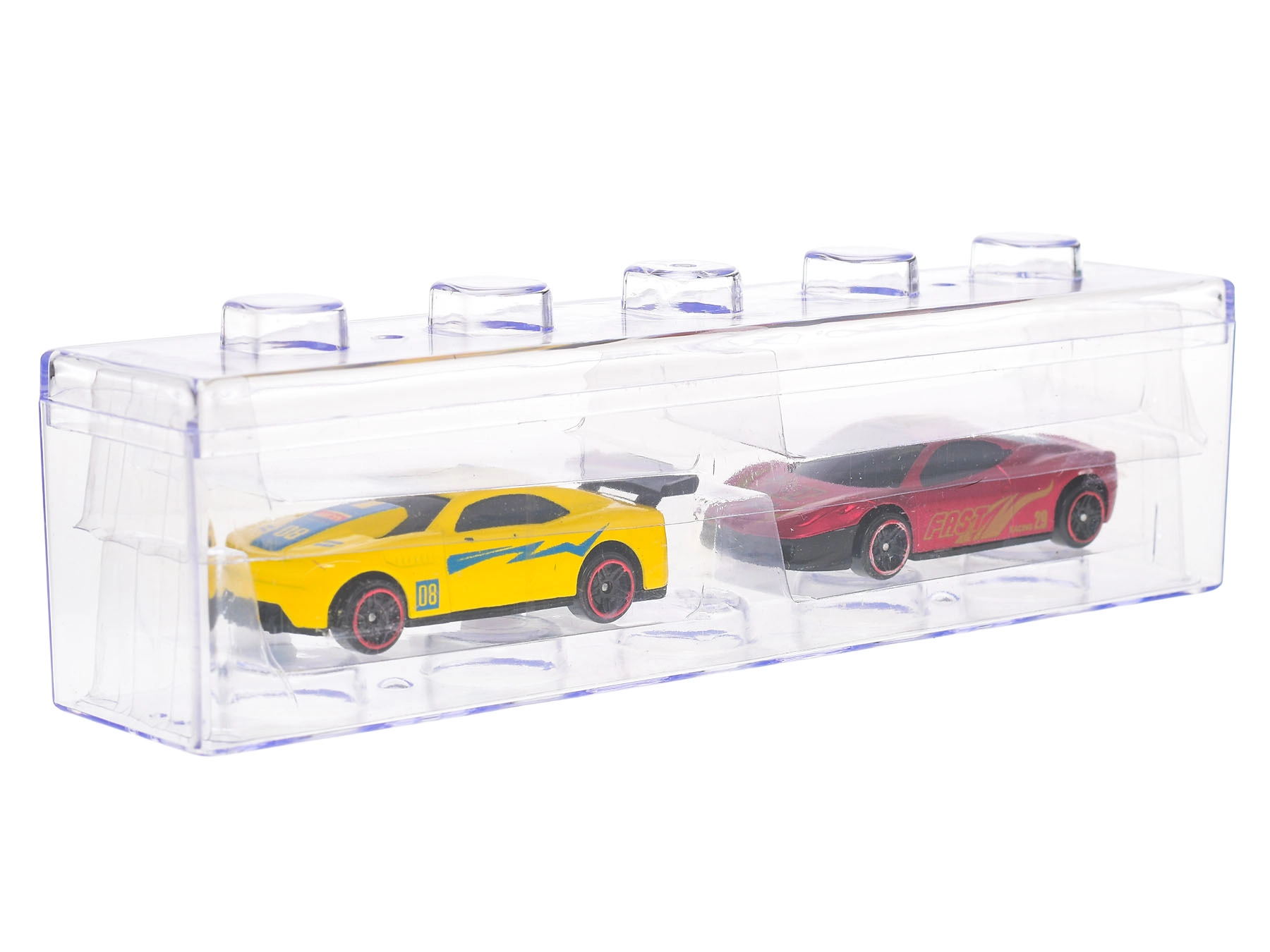 Zestaw ROADBLASTERS zawiera dwa szczegółowo wykonane wyścigowe autka z wysokiej jakości metalu. Dzięki solidnej konstrukcji wytrzymają nawet bardziej dynamiczną jazdę, a ich kompaktowy rozmiar jest idealny do dziecięcych rączek i do zabawy poza domem. Przezroczyste pudełko ułatwia przenoszenie i bezpieczne przechowywanie.