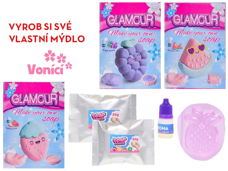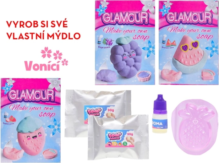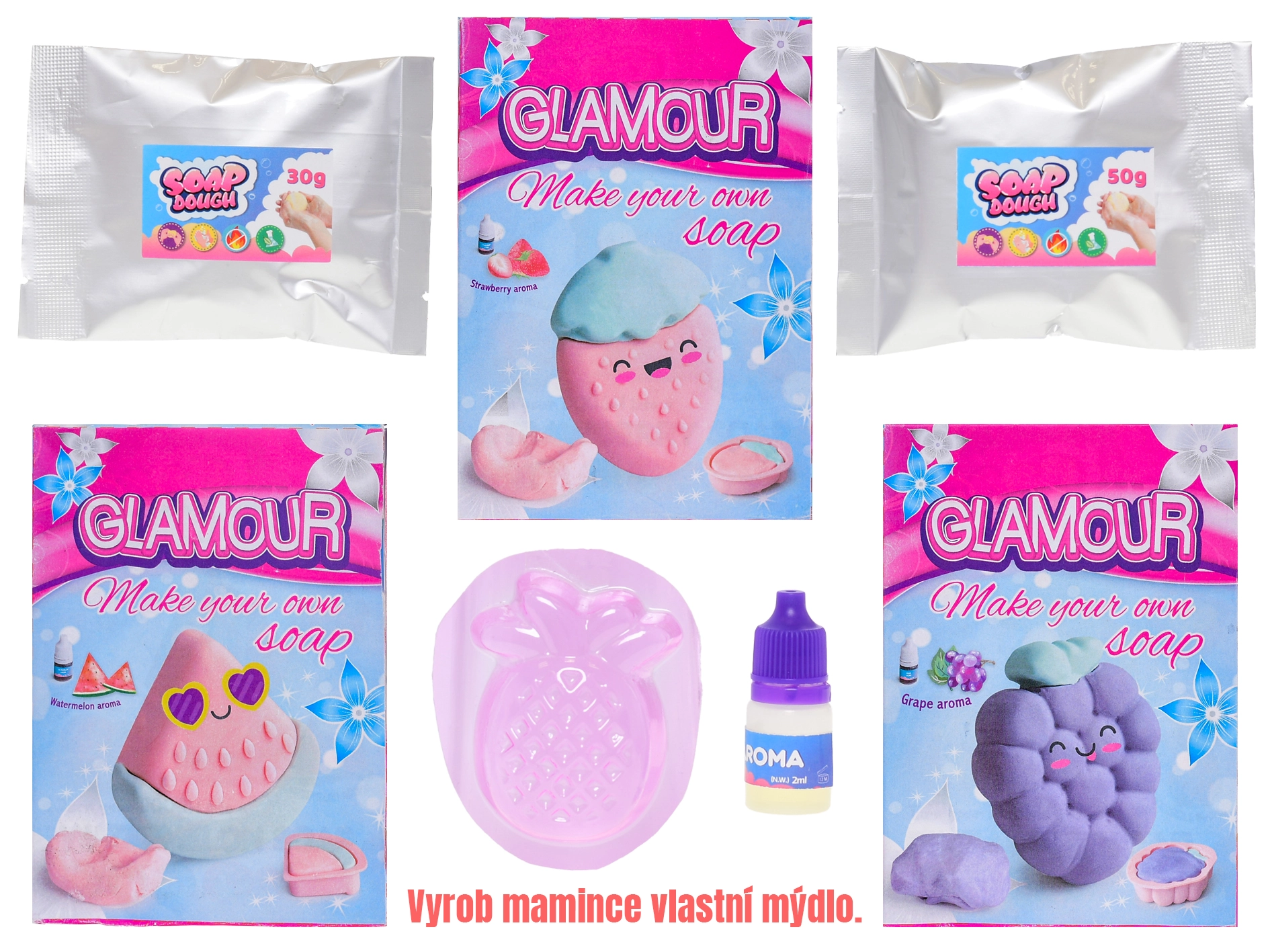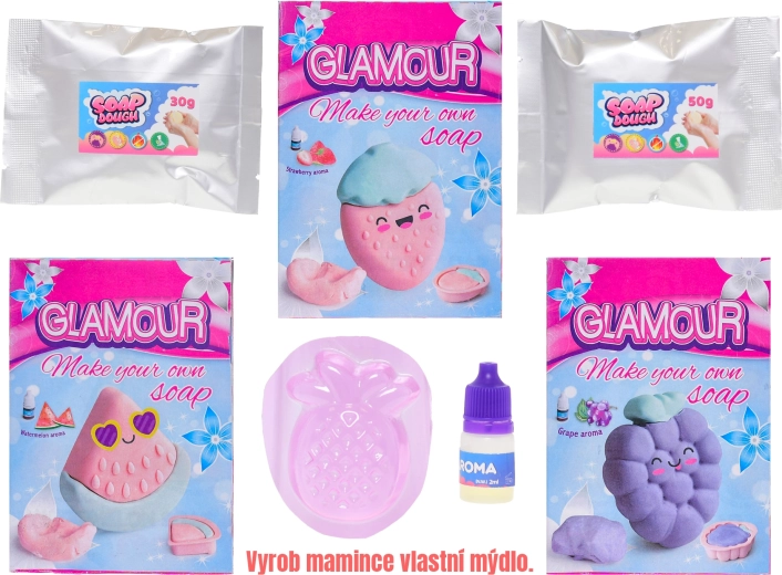 Odkryj zabawny zestaw dla małych twórców: z masą Glamour dzieci łatwo wykonają własne pachnące mydło. Zestaw wspiera kreatywność i motorykę małą, oferuje cztery owocowe zapachy – ananas, winogrono, arbuz i truskawka – i jest odpowiedni dla dzieci od 4 lat.