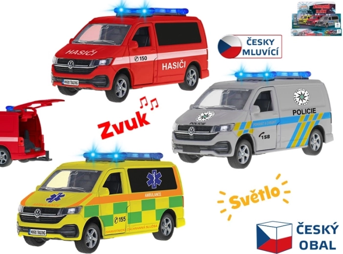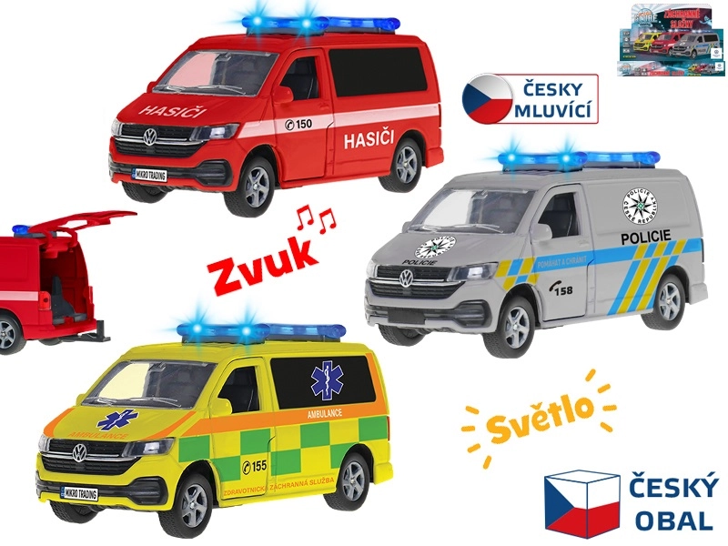 Za pełnię wrażeń odpowiadają świetlne sygnały oraz efekty dźwiękowe w języku czeskim, które wiernie naśladują prawdziwe pojazdy ratunkowe. Model dostępny jest w trzech atrakcyjnych wariantach – straż pożarna, karetka i policja – dzięki czemu dzieci mogą stworzyć kompletną flotę ratunkową.