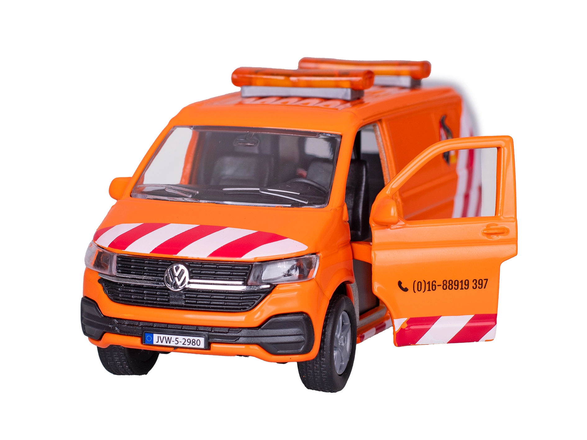 Odkryj starannie wykonany model VW Transporter, który oferuje dzieciom autentyczne wrażenia z ruchu drogowego. Metalowe nadwozie z wysokiej jakości plastikowymi detalami zapewnia wytrzymałość i długą żywotność, a efekty świetlne i dźwiękowe dodają atrakcyjności i zabawy.