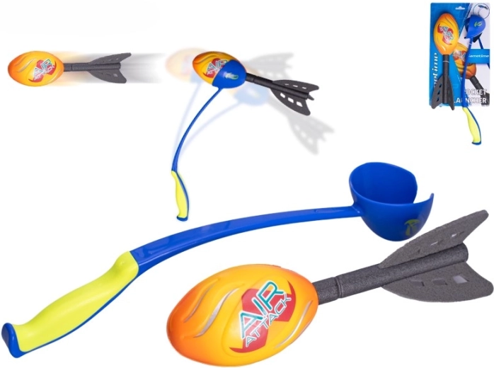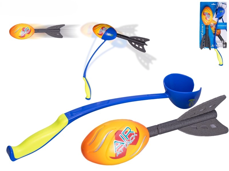 W zestawie znajduje się rakieta oraz praktyczna wyrzutnia, wszystko zaprezentowane na kartonie dla łatwego przechowywania i przenoszenia. Wystarczy nadepnąć lub nacisnąć wyrzutnię i obserwować, jak rakieta startuje w górę – idealna do ogrodu, parku i na place zabaw.
