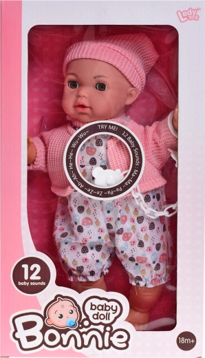 Urocza lalka o wysokości 30 cm to idealna towarzyszka dla małych opiekunek. Ma miękkie ciałko przyjemne w dotyku, mrugające oczy dla bardziej realistycznej zabawy oraz 12 dźwięków, które aktywują się po naciśnięciu. W zestawie znajduje się smoczek, a zasilanie zapewniają 3× baterie AG13 (w komplecie). Odpowiednia dla dzieci od 18 miesięcy.