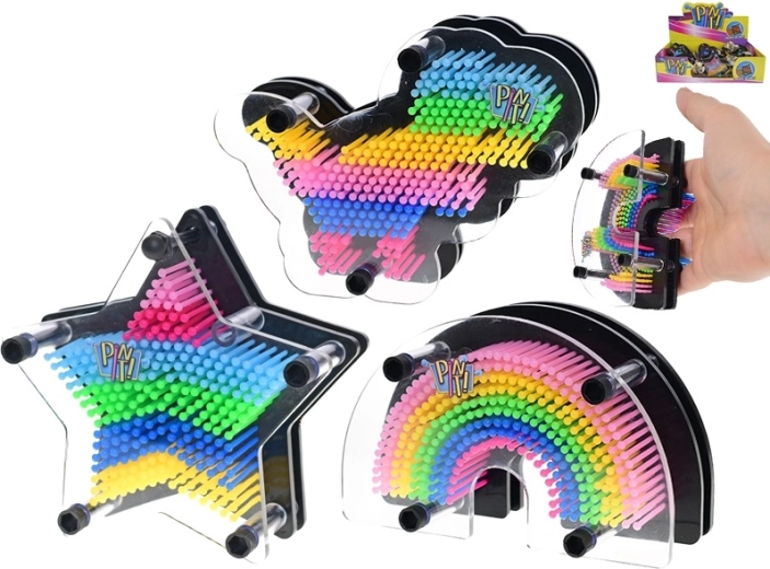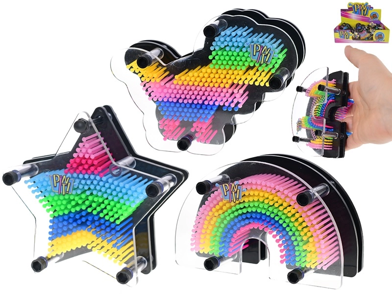 Odkryj niekończącą się zabawę z zabawką Pin It!, która tworzy detalne odciski 3D dłoni, twarzy i przedmiotów. Tysiące plastikowych kołeczków dopasowuje się do kształtu, zmieniając każdy dotyk w oryginalne dzieło sztuki. Kompaktowy rozmiar, wytrzymały plastik i sześć atrakcyjnych motywów sprawiają, że to świetny wybór dla dzieci od 3 lat i dorosłych.